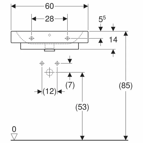 Specificatii tehnice Lavoar pe blat Geberit Icon 60 cm: