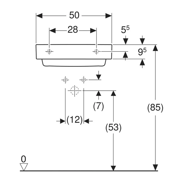 Specificatii tehnice Lavoar pe blat Geberit One 50 cm alb cu scurgere speciala: