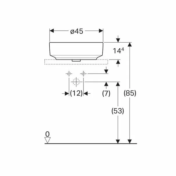 Specificatii lavoar pe blat Geberit Variform rotund cu preaplin 45 cm:
