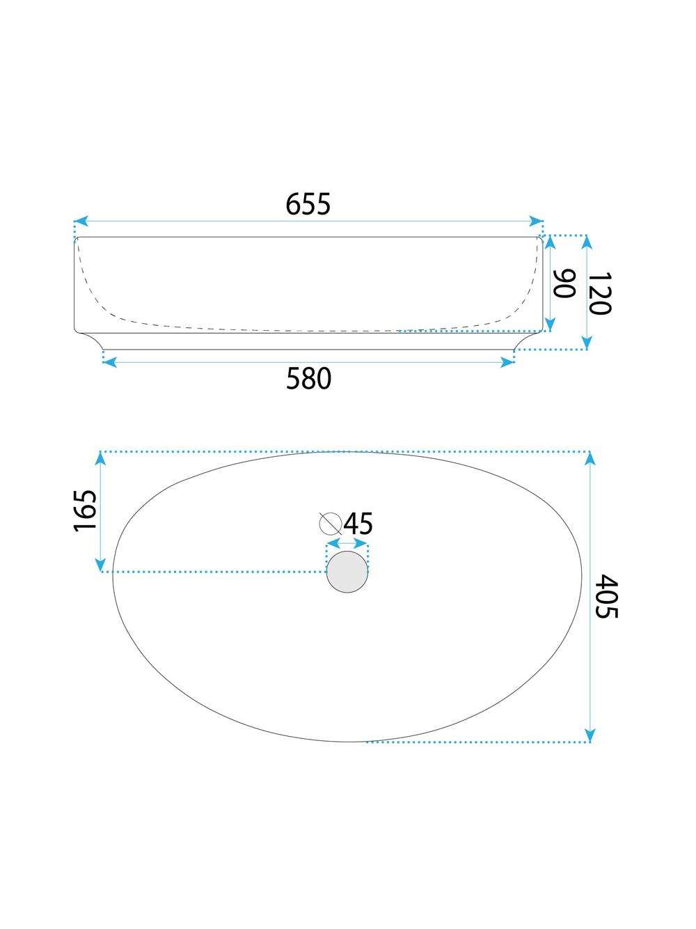 Specificații tehnice Lavoar pe blat Joana 65:
