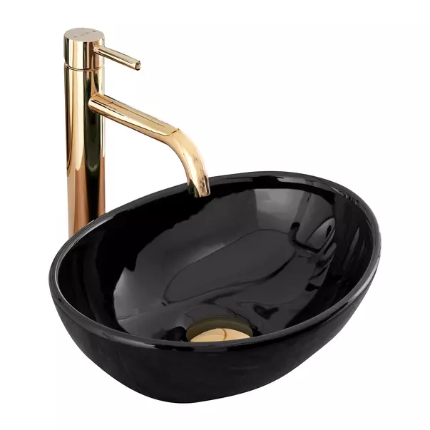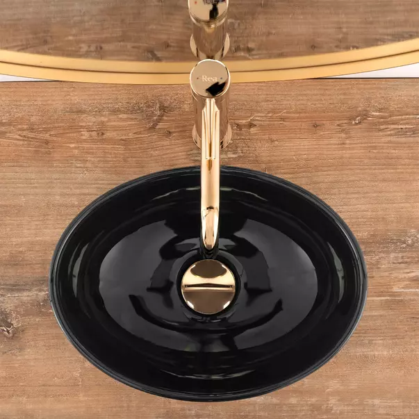 Lavoar pe blat Rea Sofia Mini oval finisaj negru lucios 35 cm