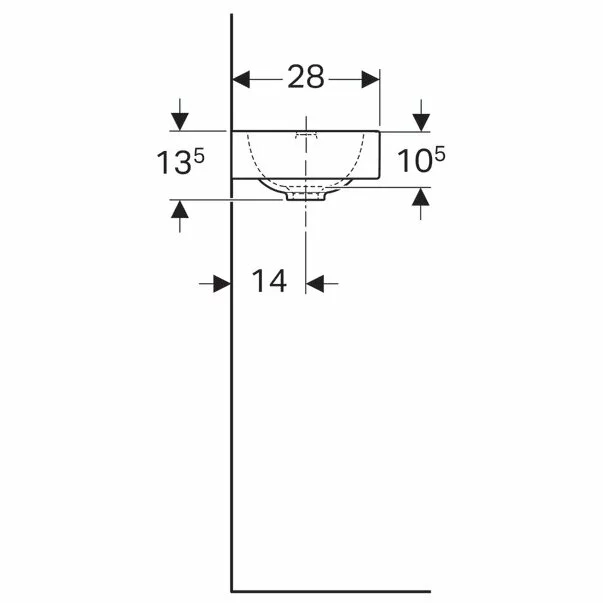 Lavoar pe mobilier/suspendat Geberit Icon 38 cm cu orificiu pentru baterie în stânga.