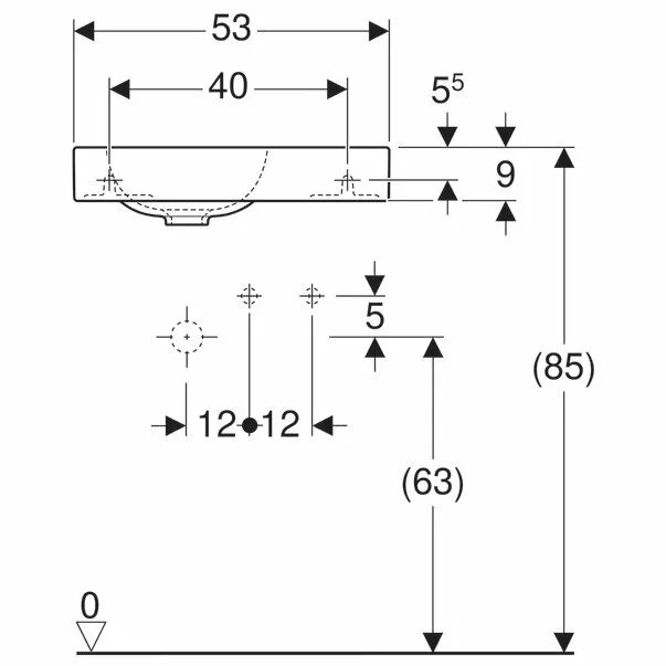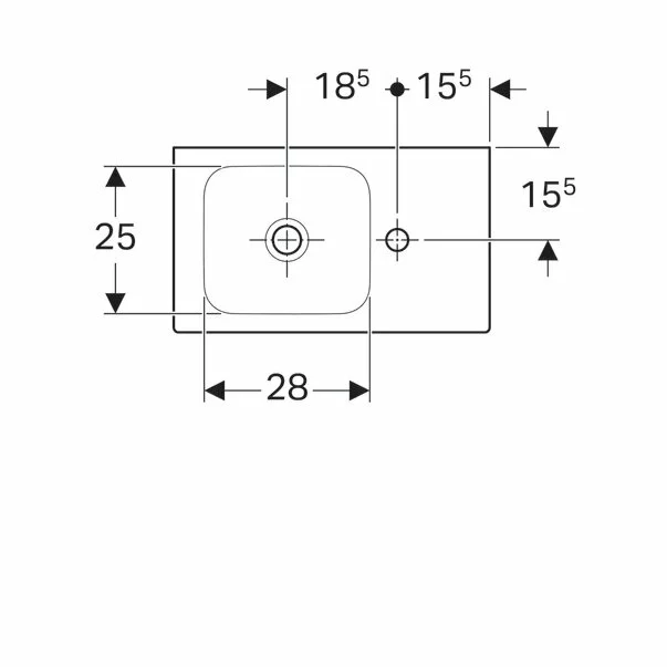 Lavoar pe mobilier/suspendat Geberit Icon 53 cm cu orificiu pentru baterie pe partea dreaptă