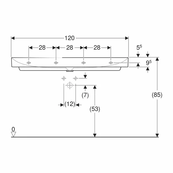 Specificatii tehnice Lavoar pe mobilier Geberit One 120 cm alb lucios cu orificiu baterie:
