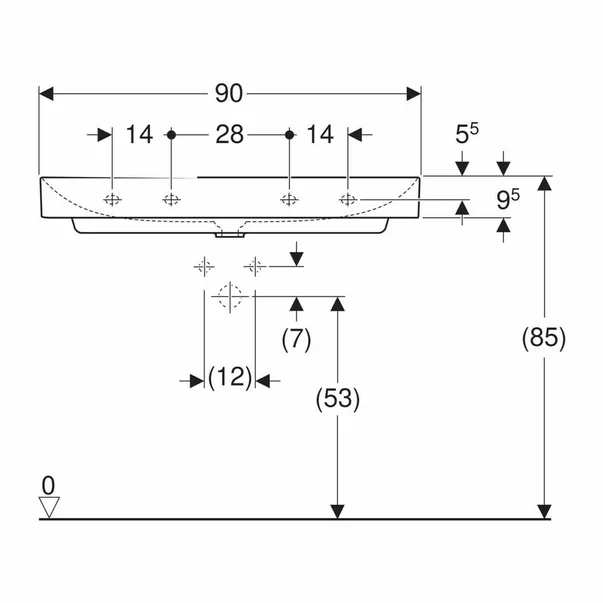 Specificatii tehnice Lavoar pe mobilier Geberit One 90 cm alb lucios KeraTect: