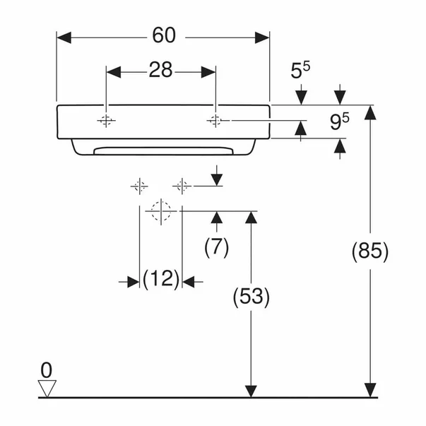 Specificatii tehnice Lavoar pe mobilier Geberit One cu scurgere speciala 60 cm alb: