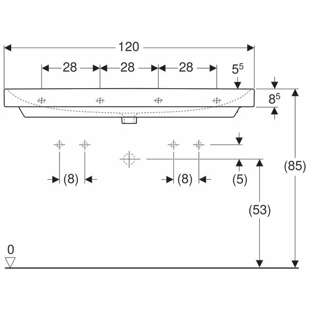 Geberit Lavoar pe mobilier Geberit Smyle Square 120 cm cu orificiu baterie stanga si dreapta
