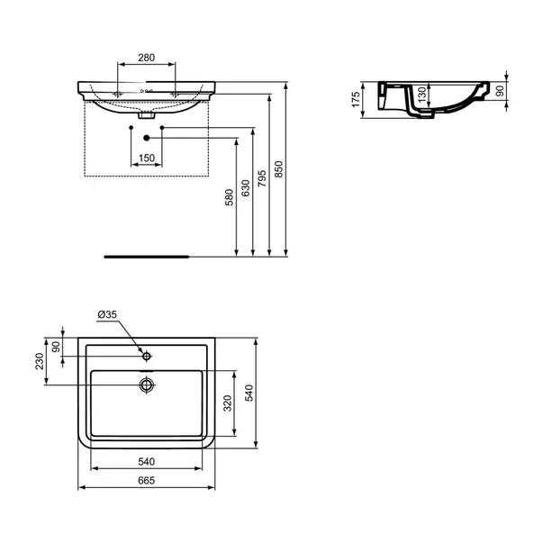 Specificatii tehnice Lavoar pe mobilier Ideal Standard Atelier Calla alb lucios 67 cm cu orificiu baterie si preaplin: