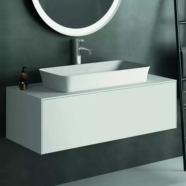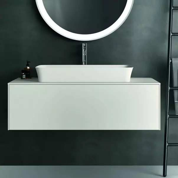 Specificatii tehnice Dulap baza suspendat Ideal Standard Atelier Conca alb mat 1 sertar si blat cu decupaj central 120 cm: