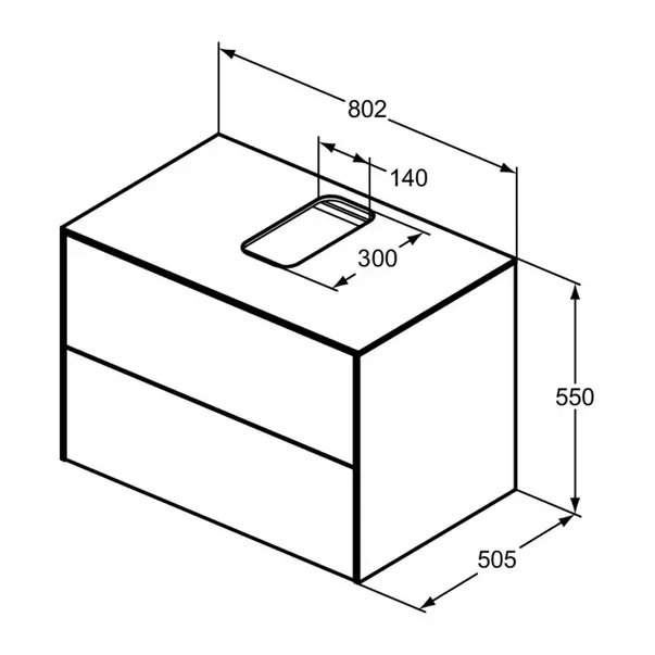 Specificatii tehnice Dulap baza suspendat Ideal Standard Atelier Conca alb mat 2 sertare si blat cu decupaj central 80 cm: