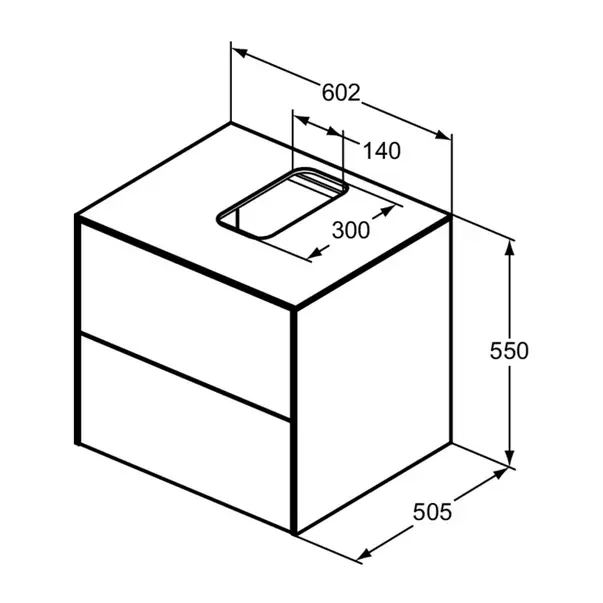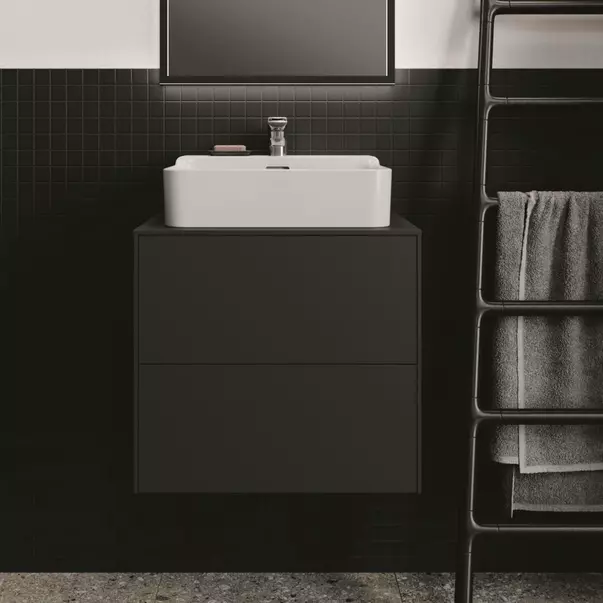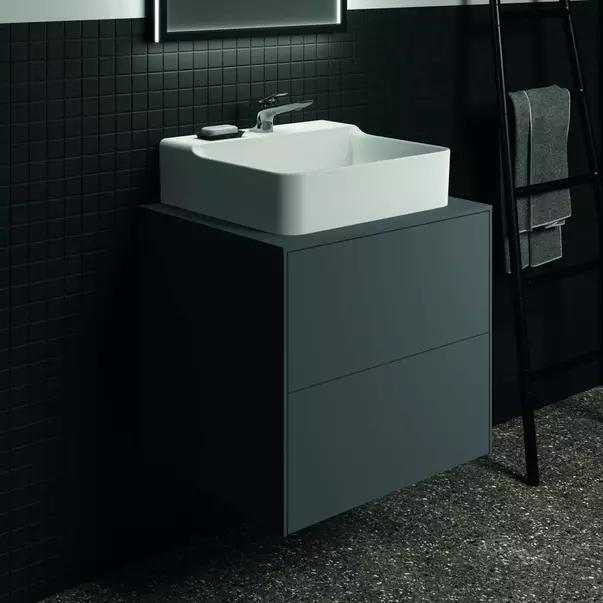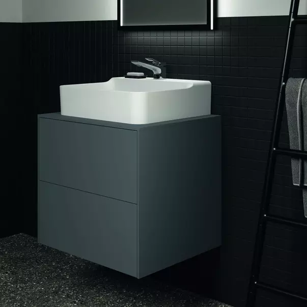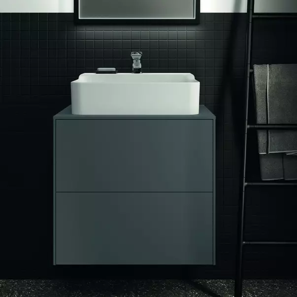 Specificatii tehnice Dulap baza suspendat Ideal Standard Atelier Conca antracit mat 2 sertare si blat cu decupaj central 60 cm: