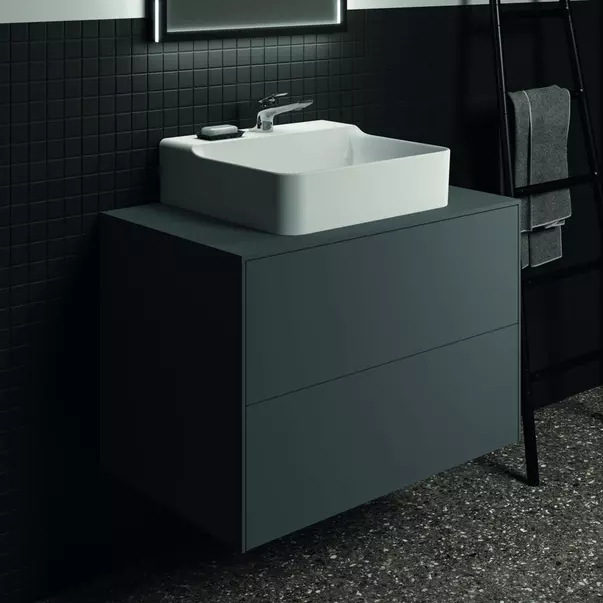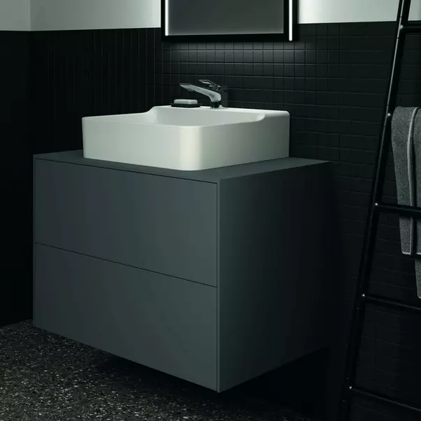 Specificatii tehnice Dulap baza suspendat Ideal Standard Atelier Conca antracit mat 2 sertare si blat cu decupaj central 80 cm:
