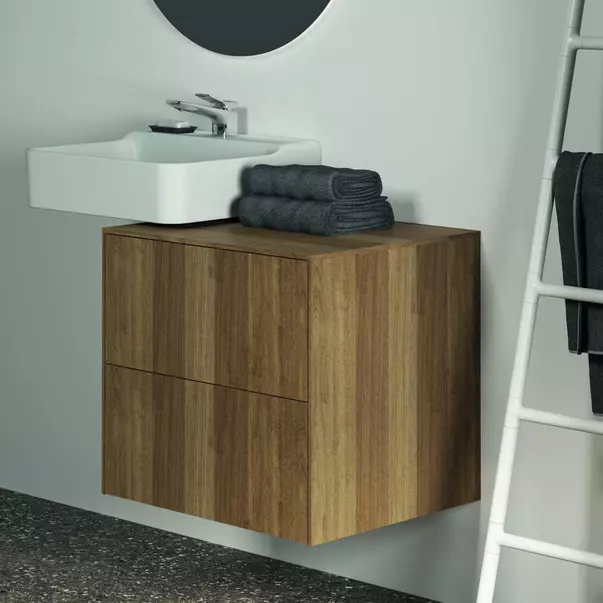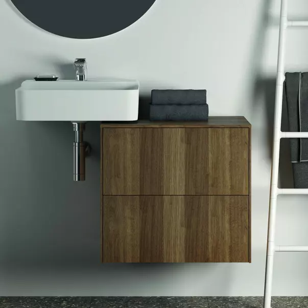 Specificatii tehnice Dulap baza suspendat Ideal Standard Atelier Conca finisaj nuc inchis 2 sertare cu blat 60 cm:
