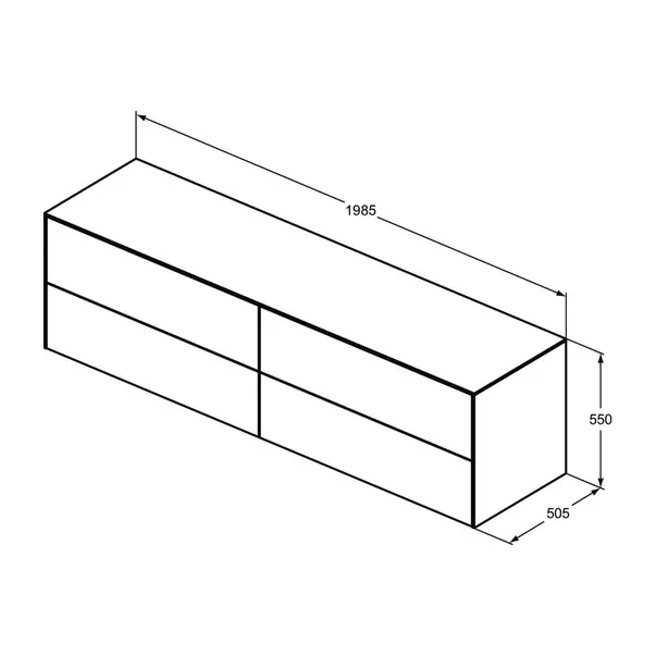 Specificatii tehnice Dulap baza suspendat Ideal Standard Atelier Conca finisaj nuc inchis 4 sertare cu blat 200 cm: