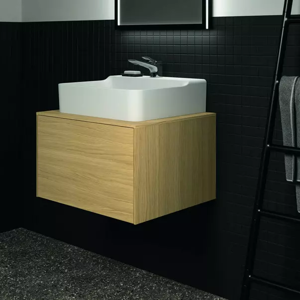 Specificatii tehnice Dulap baza suspendat Ideal Standard Atelier Conca finisaj stejar deschis 1 sertar si blat cu decupaj central 60 cm: