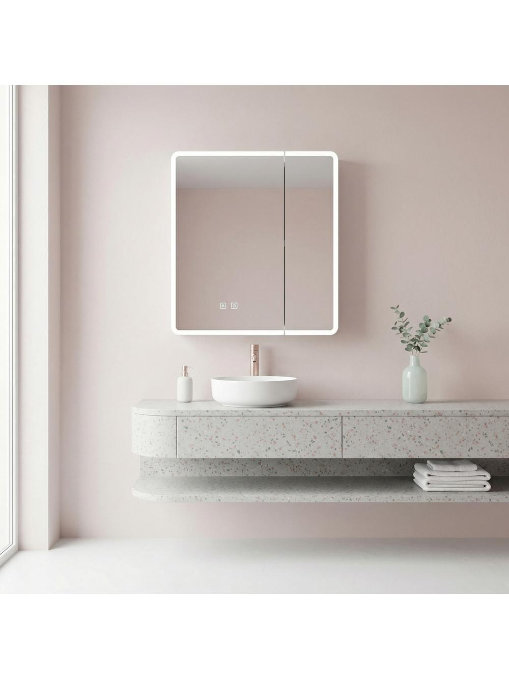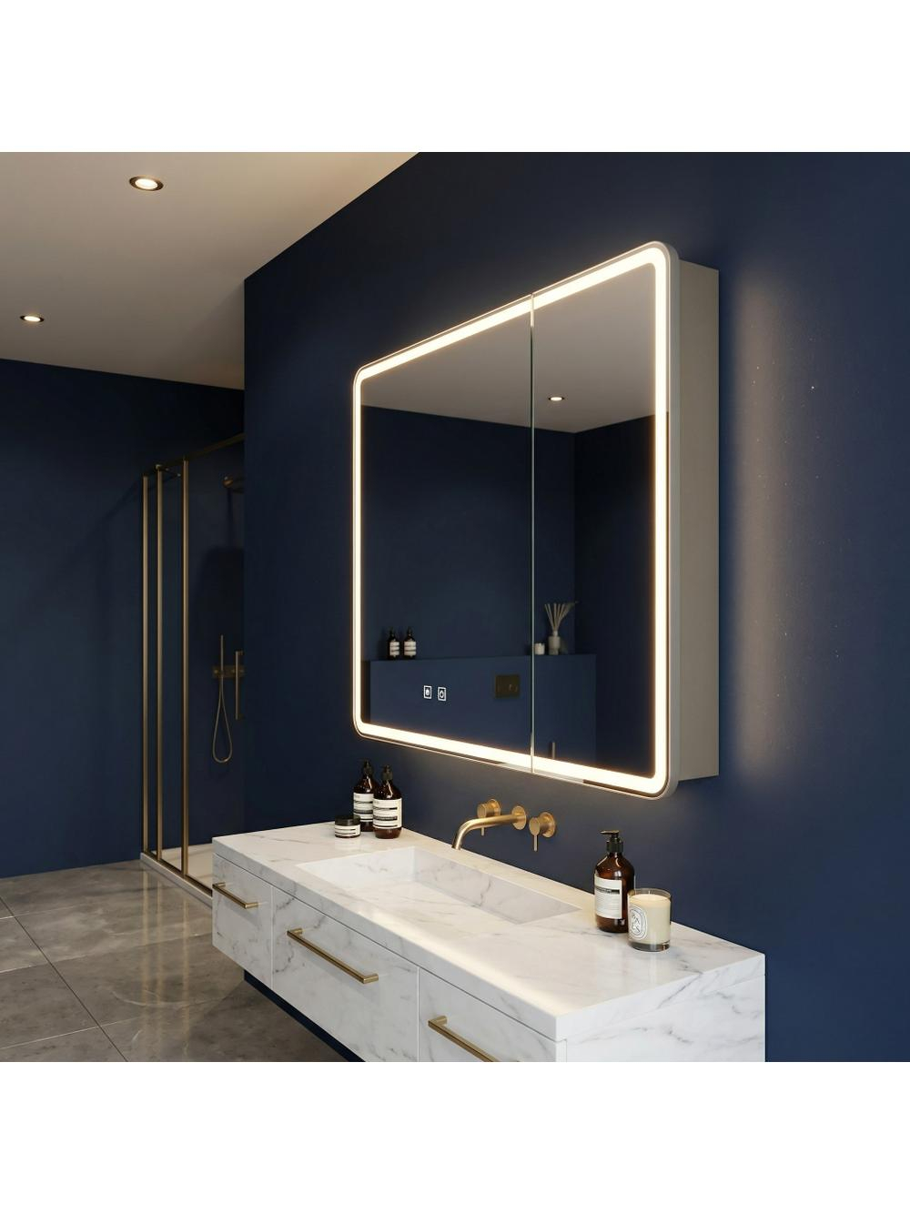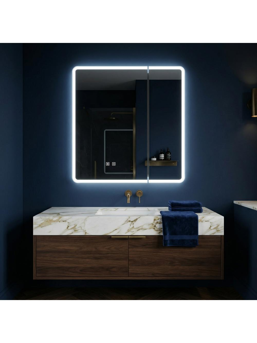 Iluminare LED integrată - rama cu colțuri rotunjite în jurul oglinzii emite o lumină uniformă, perfectă pentru iluminarea feței în timpul rutinei zilnice de îngrijire.
