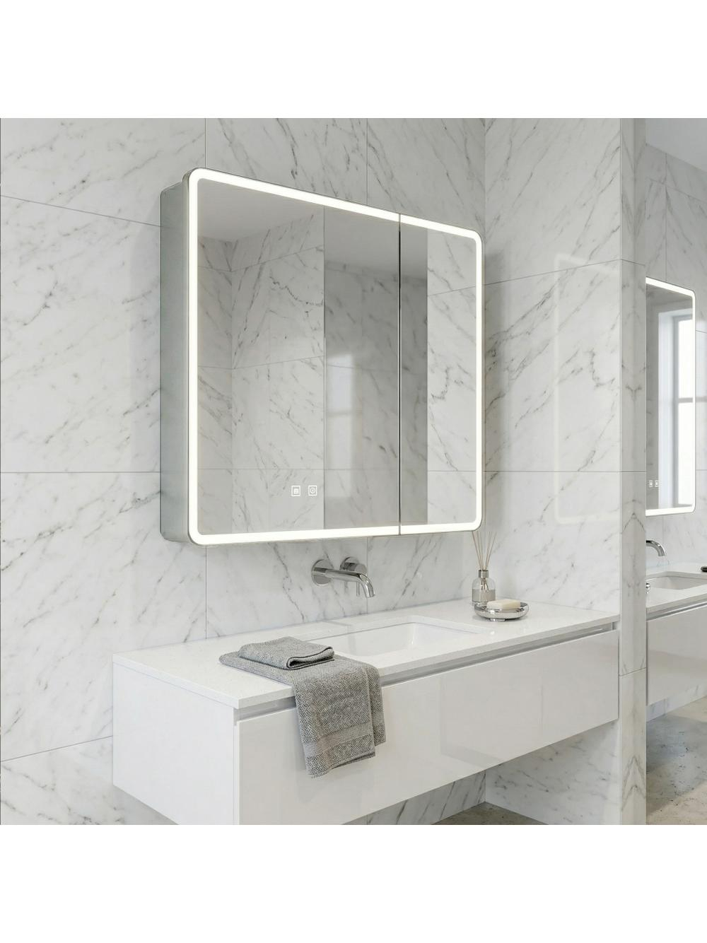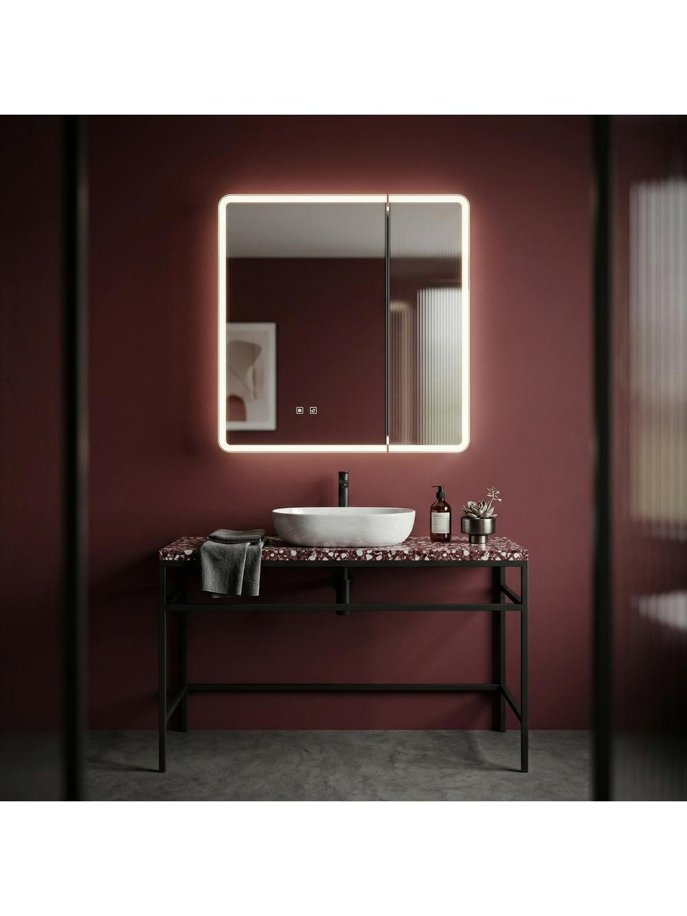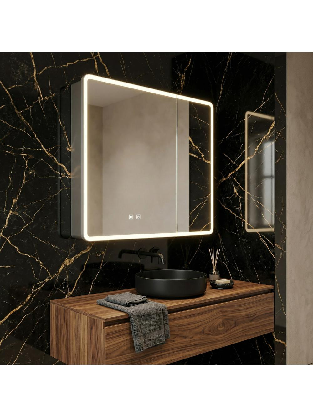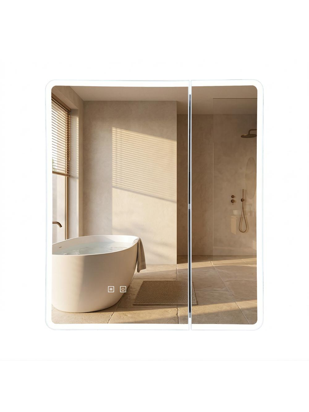 Iluminare LED integrată - rama cu colțuri rotunjite în jurul oglinzii emite o lumină uniformă, perfectă pentru iluminarea feței în timpul rutinei zilnice de îngrijire.