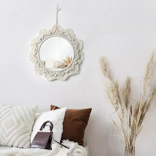 Oglinda rotunda Rea Boho 322047 bej 50 cm