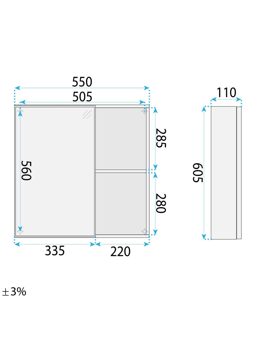 Dulapul sub lavoar este proiectat pentru depozitare practică, având un sertar cu organizator intern și un raft deschis pentru accesorii. Lavoarul ceramic se potrivește perfect dimensiunilor dulapului, având un orificiu standard de montaj pentru o baterie statică. Corpul cu oglindă oferă funcționalitate suplimentară, combinând oglinda cu rafturi pentru cosmetice.