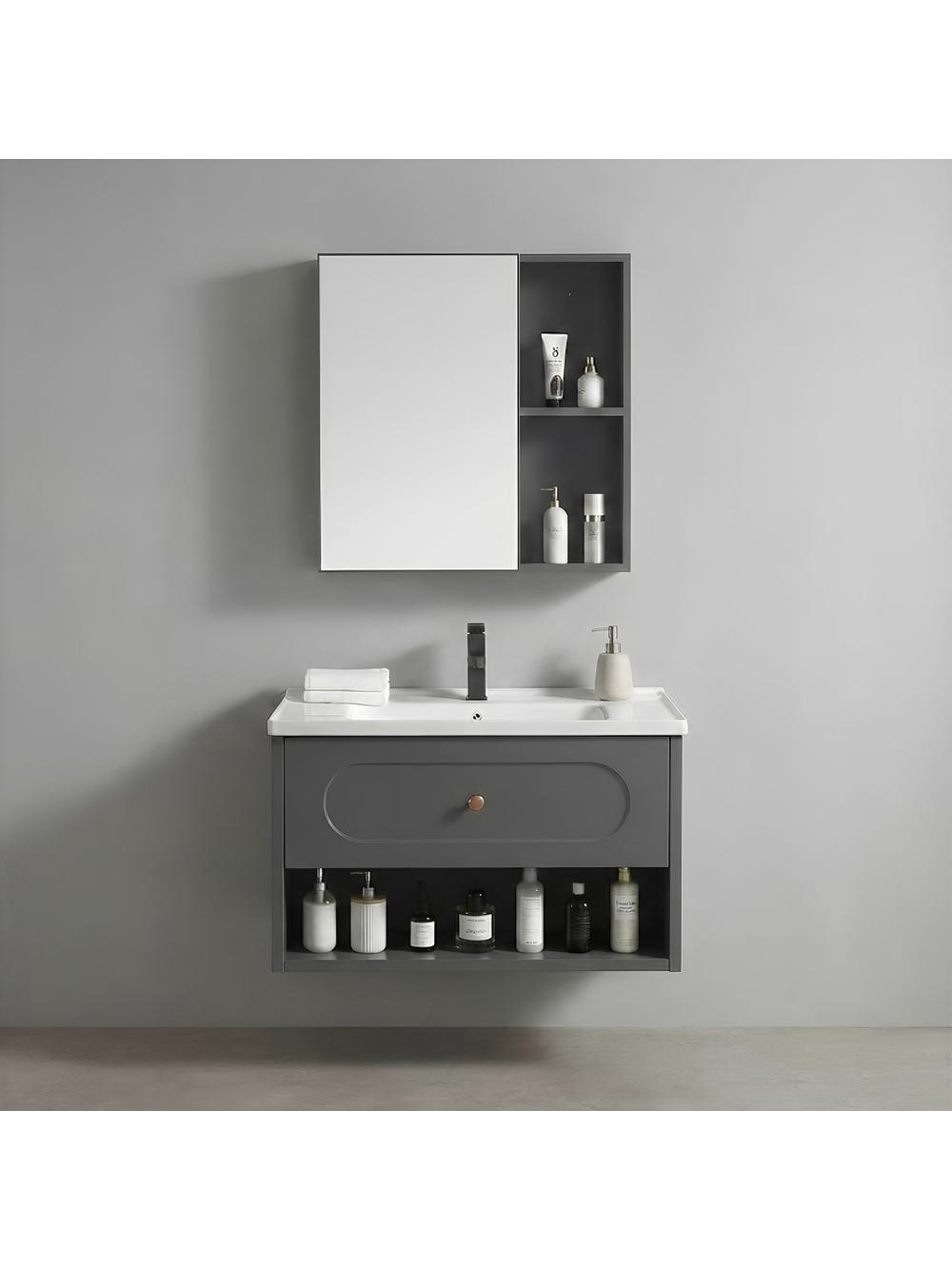 Setul de mobilier de baie River este soluția completă pentru organizarea practică a zonei de lavoar. Includând un dulap suspendat sub lavoar, un lavoar ceramic dedicat și un corp superior cu oglindă, acest sistem suspendat este simplu de montat. Dulapul sub lavoar oferă spațiu de depozitare practic, cu un sertar și raft deschis. Lavoarul ceramic se potrivește perfect cu dulapul, având un orificiu standard pentru montarea unei baterii. Dulapul cu oglindă combină funcția de oglindă cu spațiu de depozitare pentru cosmetice. Setul este ușor, combinând un lavoar ceramic clasic cu corpuri de mobilier din plastic. Montajul pe perete facilitează accesul la pardoseala sub mobilier. Setul River oferă o soluție practică și gata făcută pentru amenajarea băii.