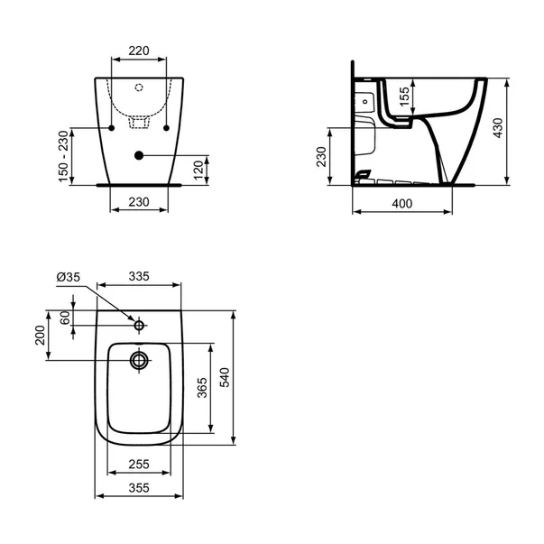 Specificatii tehnice Bideu pe pardoseala Ideal Standard I.life B alb lucios: