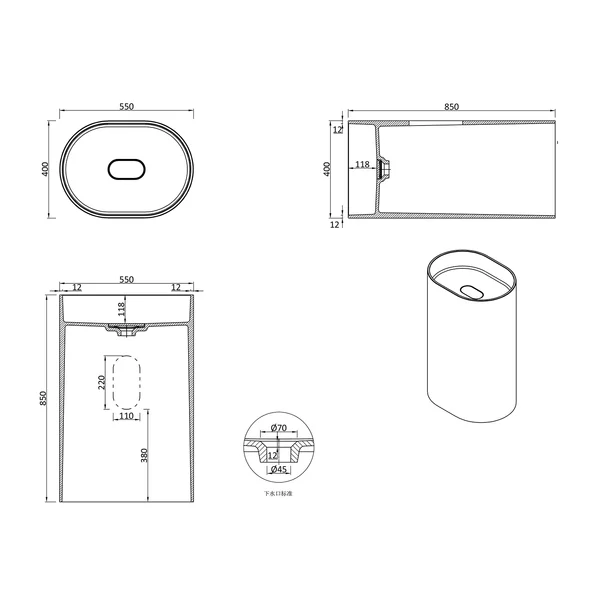 Specificatii tehnice Lavoar freestanding din compozit Rune Frigg 55 cm: