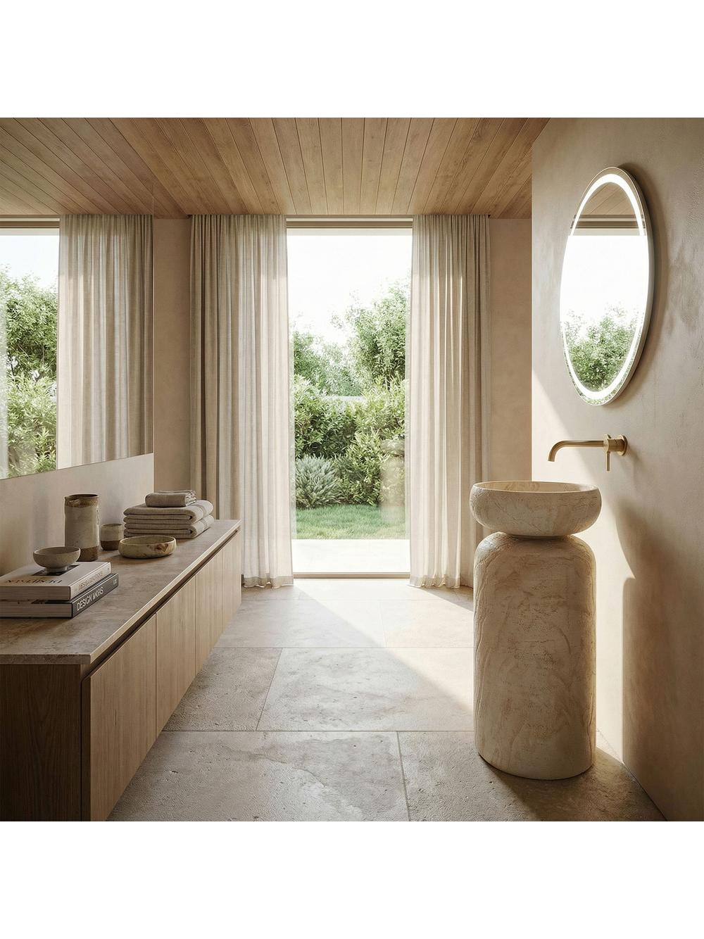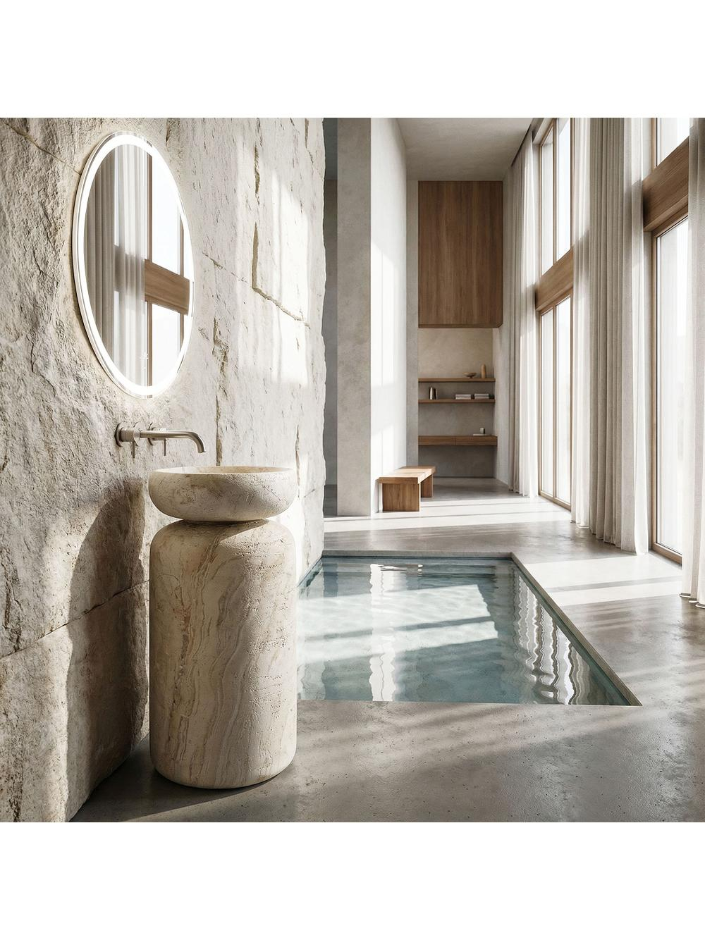 Designul unic ce imită piatra - textura neregulată și sculpturală oferă lavoarului un aspect autentic, rustic, care se potrivește perfect cu stilurile de amenajare interioară Japandi, Wabi-sabi și minimalism modern.