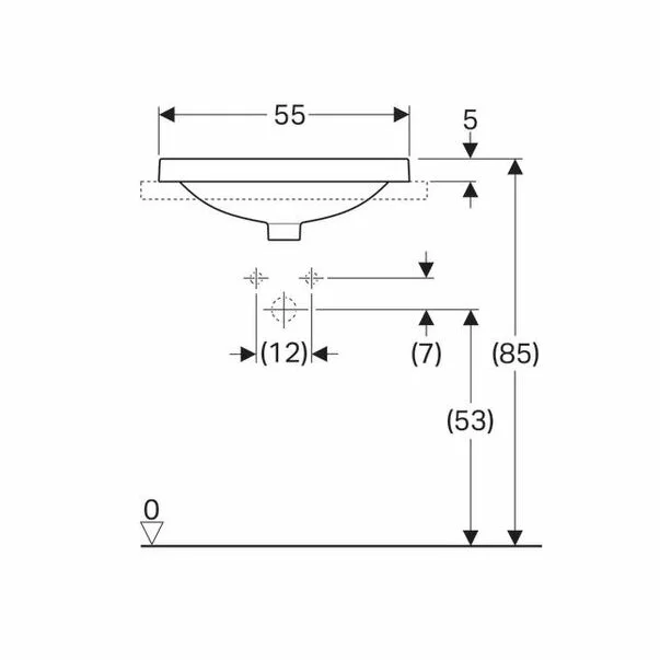 Specificatii lavoar semiincastrat Geberit Variform dreptunghiular cu preaplin 55x45cm: