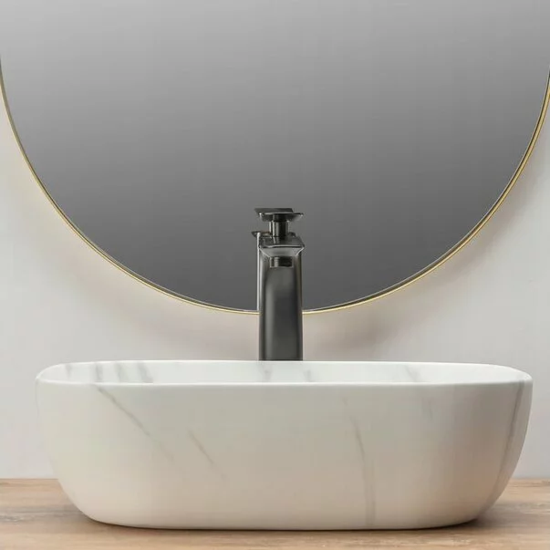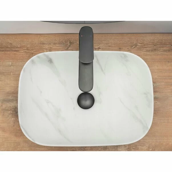 Designul sau elegant se potriveste perfect pe orice blat, avand un finisaj ce imita marmura, iar acesta adauga un aer sofisticat oricarei bai, fie ca este stil clasic sau modern. Materialul sau durabil este usor de intretinut, ceea ce il face ideal pentru utilizare pe termen lung.