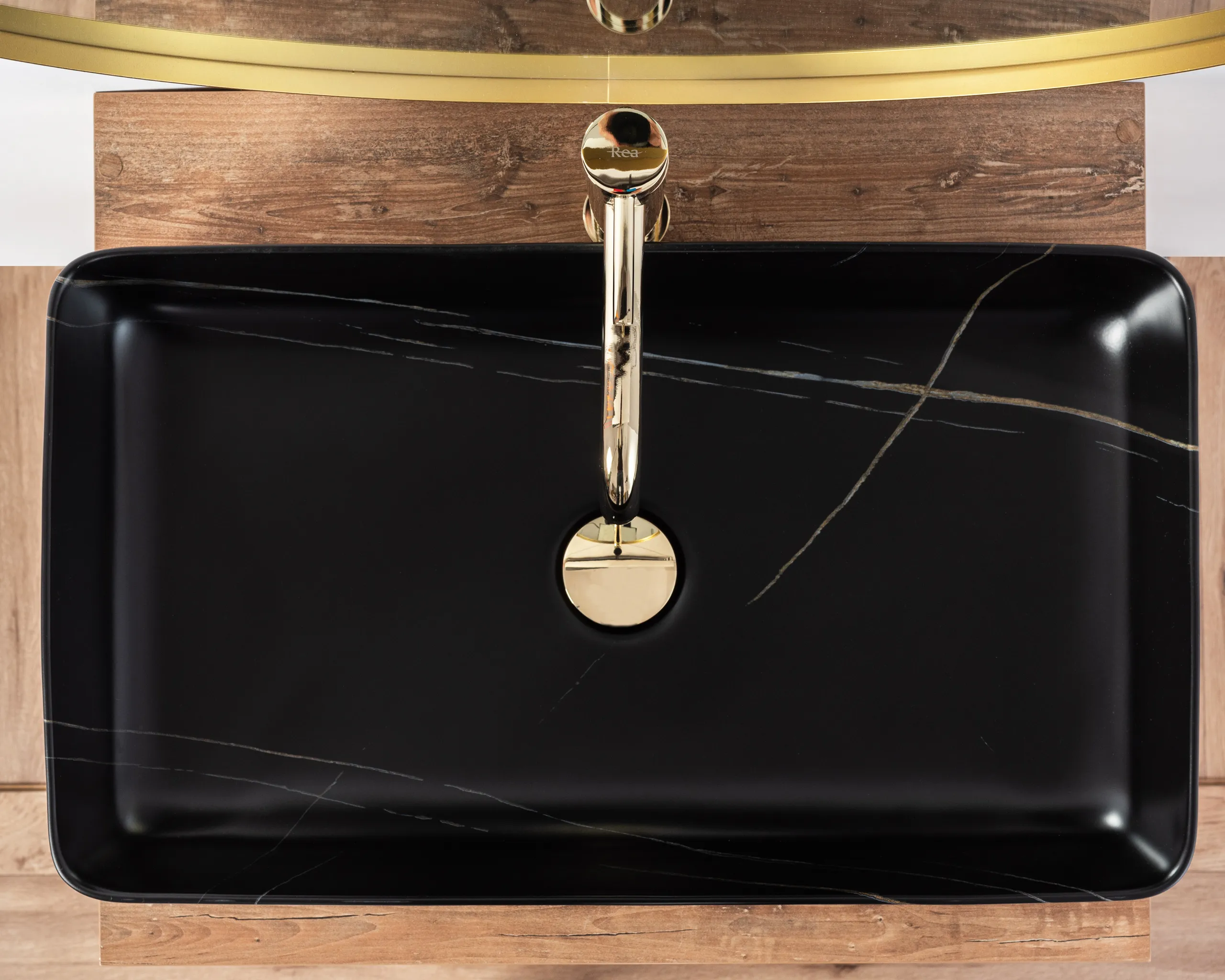 Datorită tehnicii în care a fost realizat stratul superior al lavoarului, fiecare piesă are un model unic și unic. Acest efect imită piatra naturală. Este realizat din ceramică sanitară de înaltă calitate. Datorită unei faze speciale de producție, este durabil și ușor de curățat.