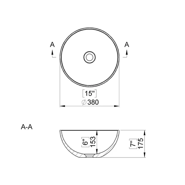 Specificatii tehnice Lavoar pe blat din compozit Marmite Riga High 38 cm alb: