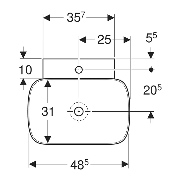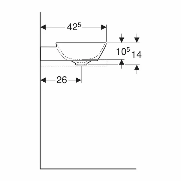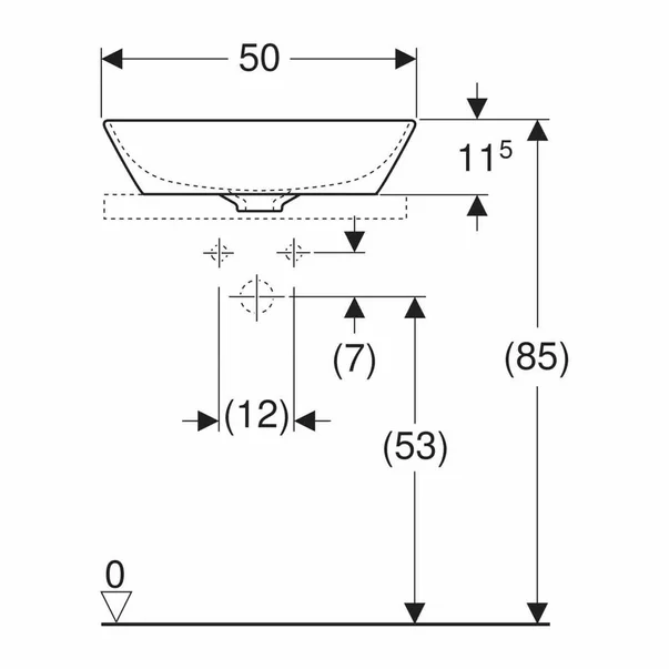 Specificatii tehnice Lavoar pe blat Geberit One 50 cm alb lucios KeraTect cu orificiu baterie: