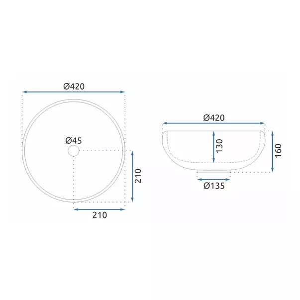 Specificatii tehnice Lavoar pe blat Rea Ice rotund finisaj negru lucios 42 cm:
