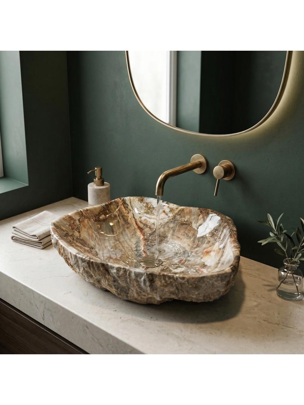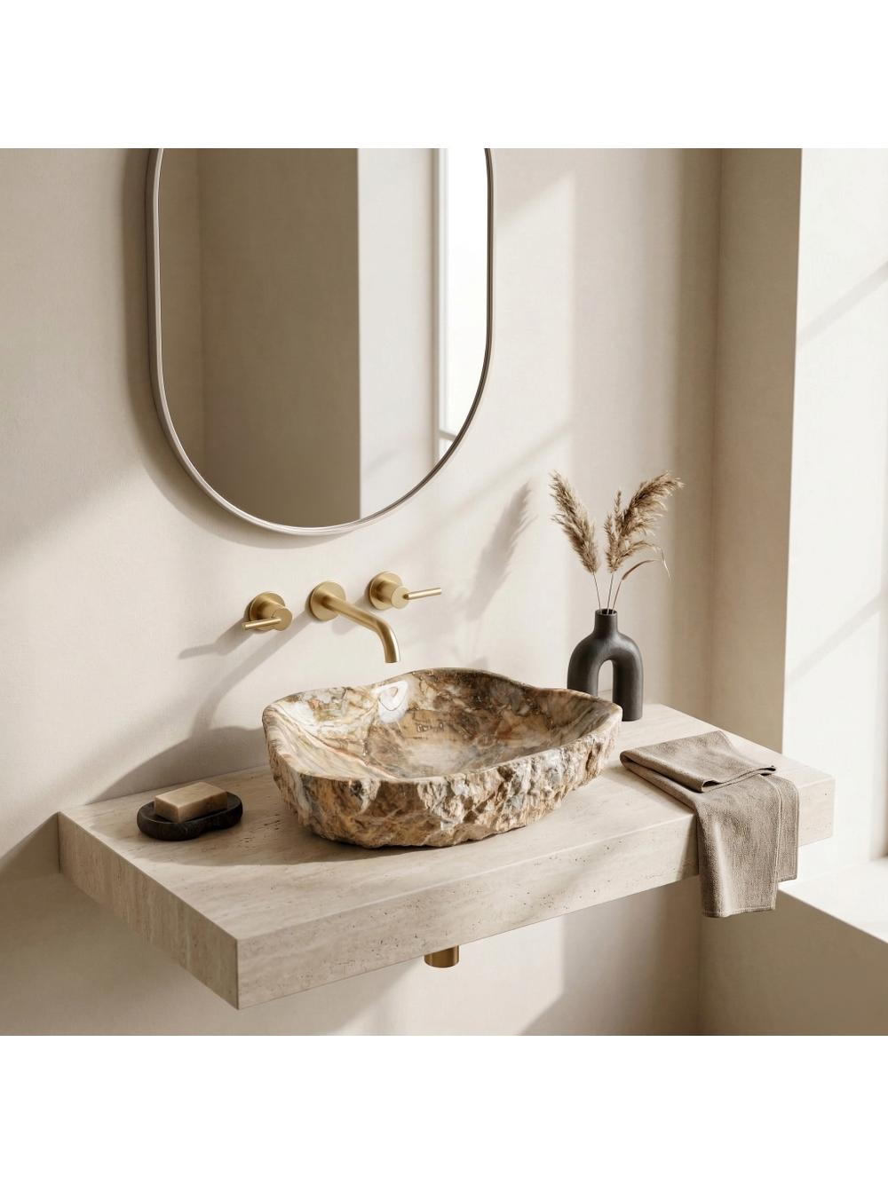 Construit din compozit de piatră artificială, acest lavoar este rezistent la zgârieturi, decolorări și alte deteriorări mecanice, asigurându-ți o durabilitate de lungă durată. Forma sa organică, cu linii fluide și neregulate, aduce o notă de ușurință și armonie în orice baie.