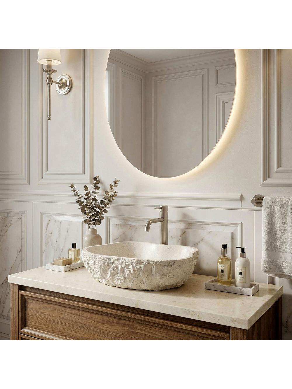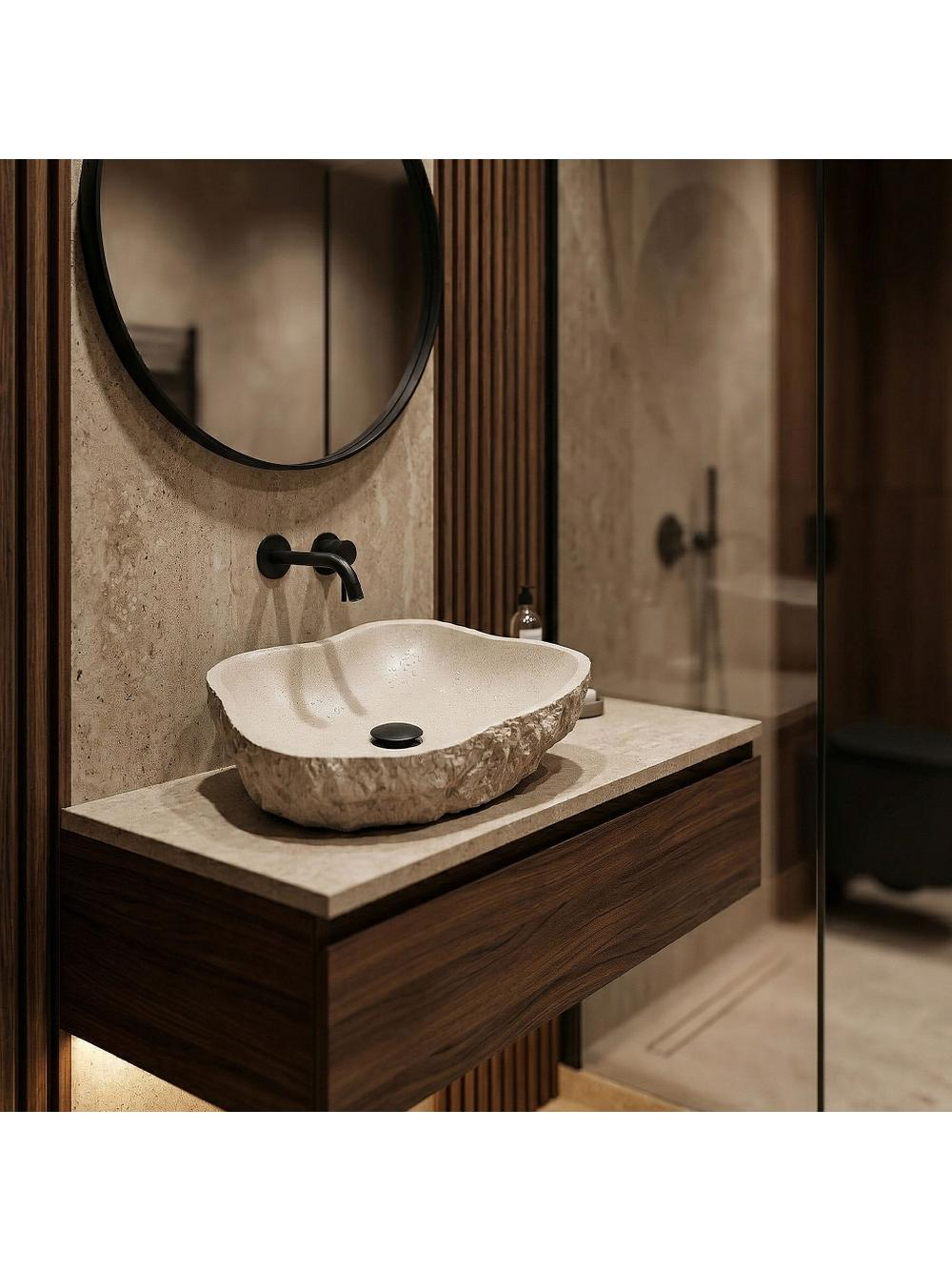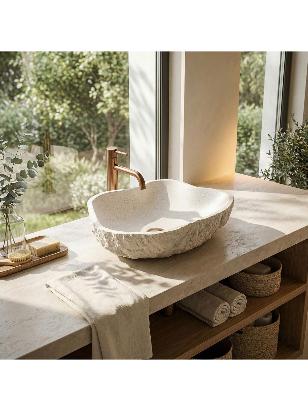 Interiorul mat și neted al lavoarului facilitează curățarea zilnică și asigură un flux liber al apei. Cu posibilitatea de montaj pe blat sau pe dulap, acest model devine un element de decor sculptural în zona de spălare. Esențial în interioarele moderne, wabi-sabi sau inspirate de natură, lavoarul Rea Isla Warm Beige aduce o notă spectaculoasă și căldură în orice amenajare.
