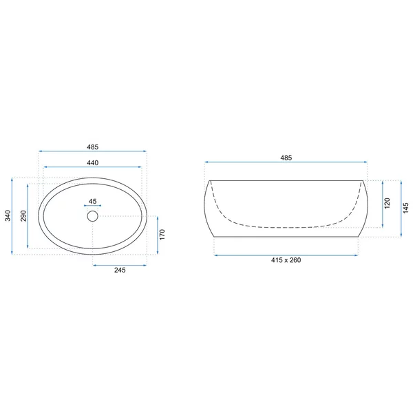 Specificatii tehnice Lavoar pe blat Rea Linda Lava alb-marmura 48 cm: