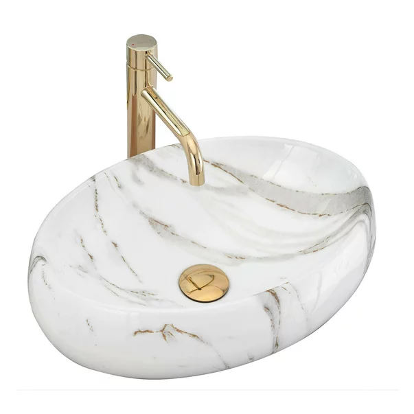 Lavoar pe blat Rea Linda Lava alb-marmura 48 cm