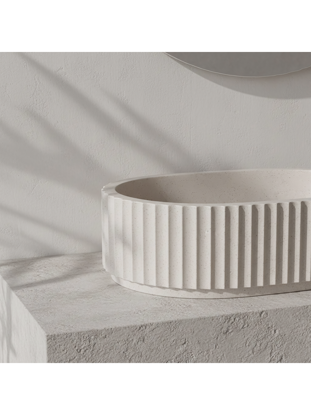 Optează pentru un accent natural în baia ta cu lavoarul pe blat Rea Mika Ivory. Designul său captivant — dat de cromatica deschisă și combinația inedită de suprafețe — va atrage privirile. Textura externă brută și aspră contrastează cu interiorul cuvei impecabil neted. Produsul în întregime este confecționat din piatră artificială compozită modernă Artificial Stone, care garantează o durabilitate de lungă durată.