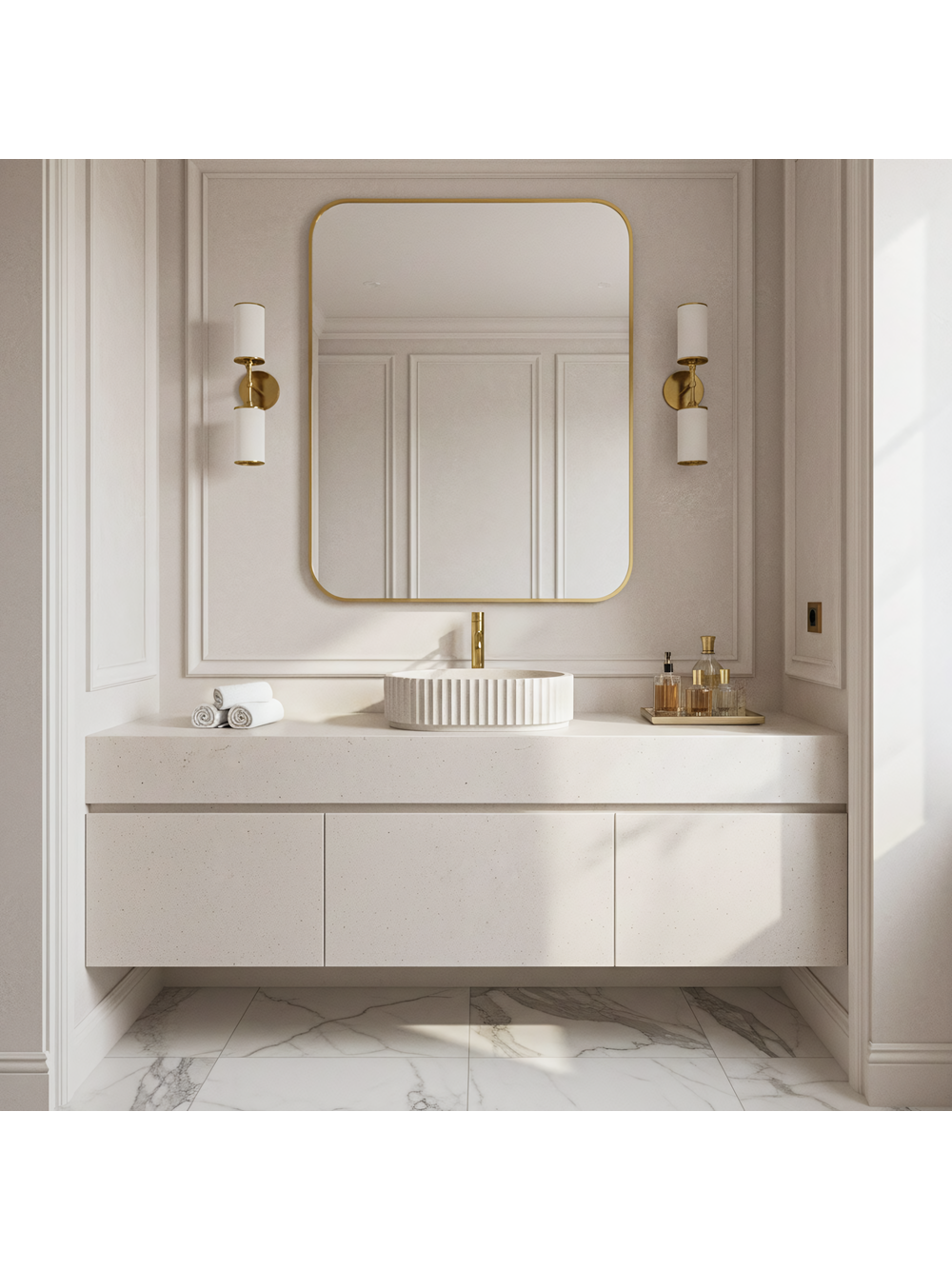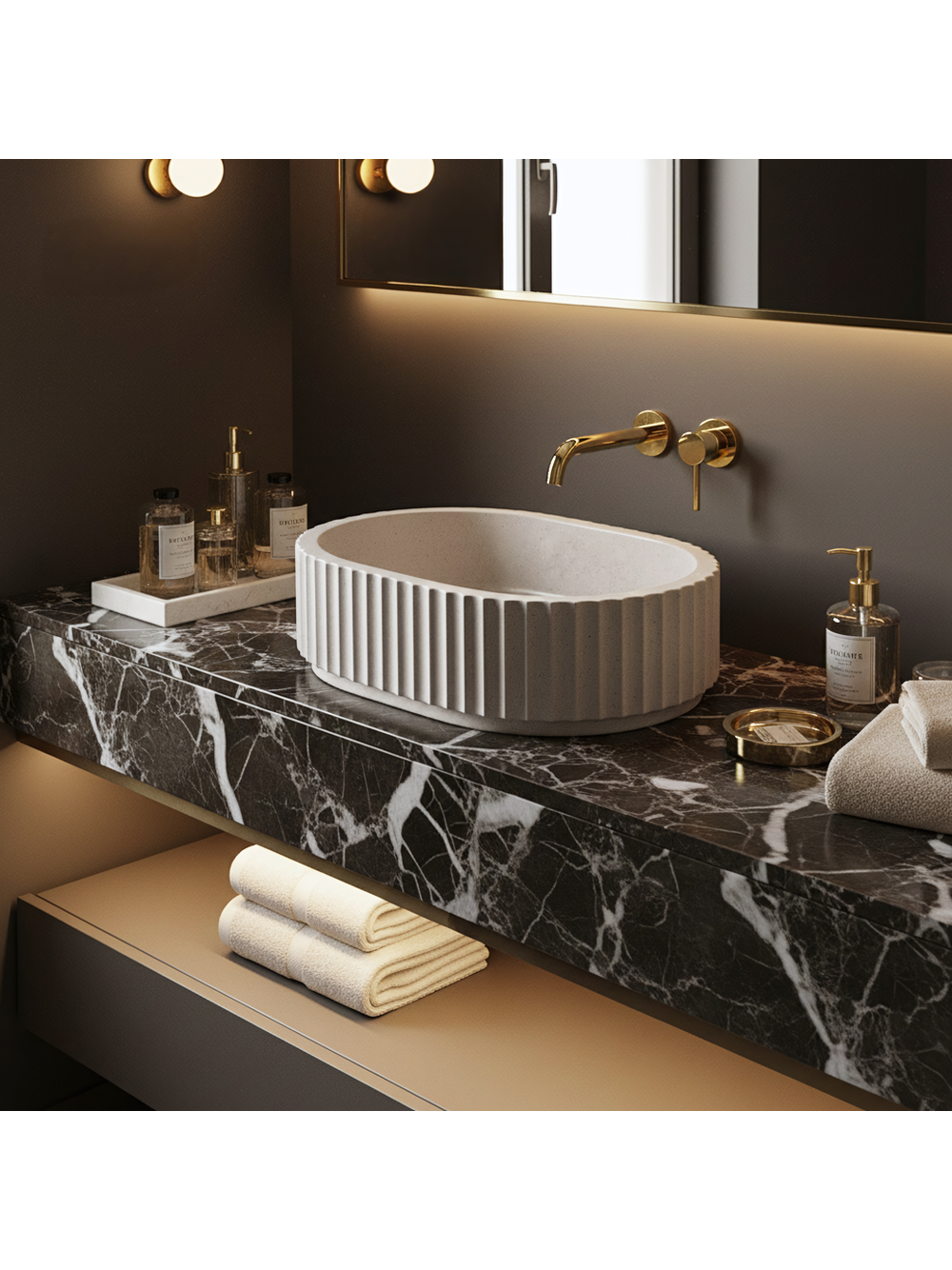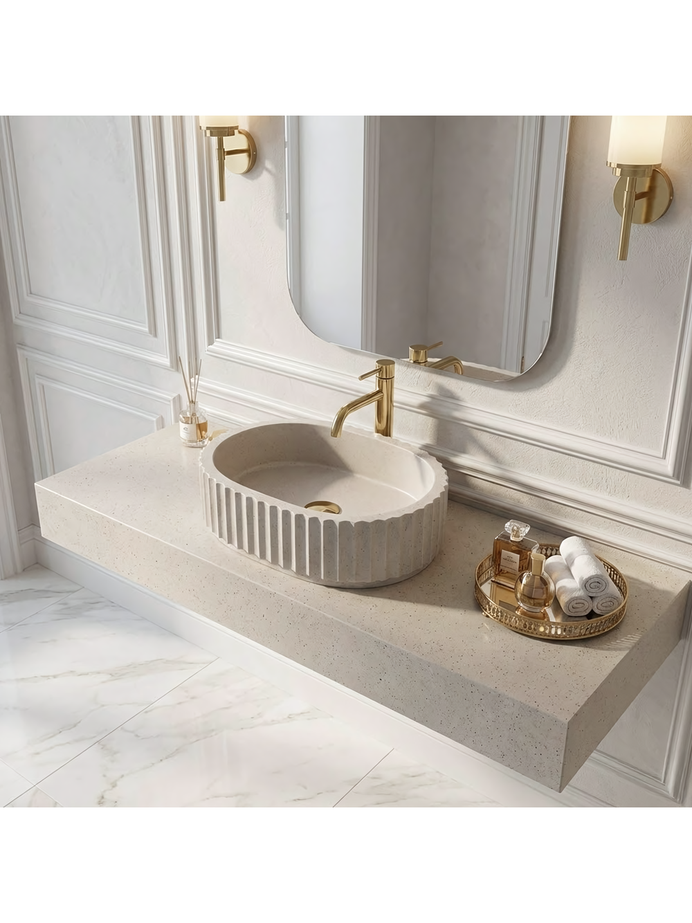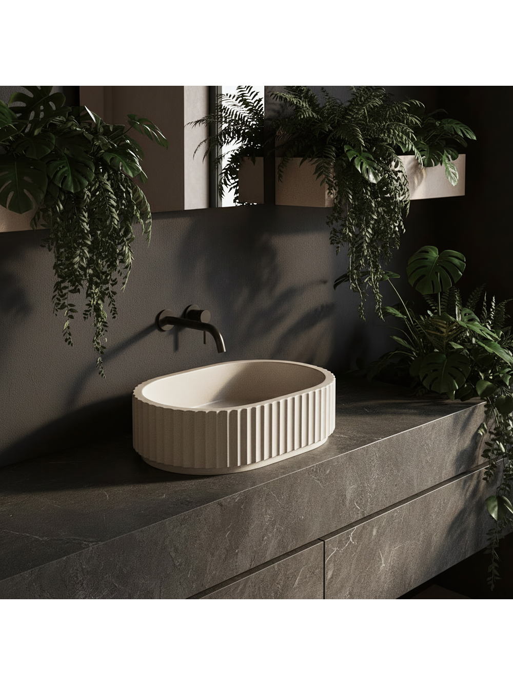 Nuanța Ivory — lavoarul este finisat într-o tonalitate deschisă și caldă de alb spart. Această culoare universală aduce lumină în interior și se potrivește perfect esteticii pietrelor naturale, precum gresia sau calcarul.