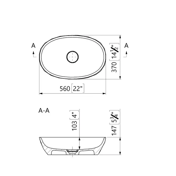 Specificatii tehnice Lavoar pe blat Marmite Aruba alb 56 cm:
