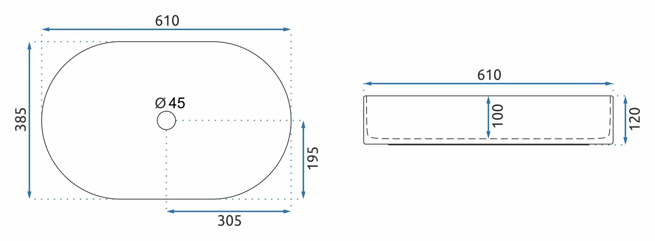 Lungime lavoar: 610 mm