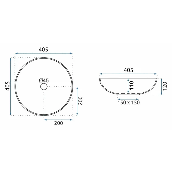 Specificatii tehnice Lavoar pe blat negru mat Rea Fibo: