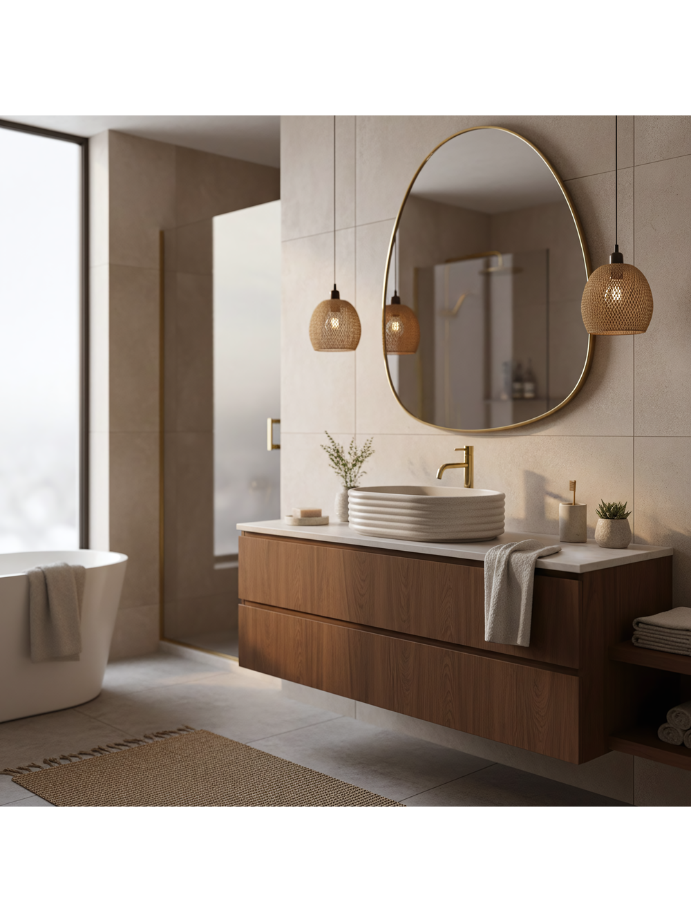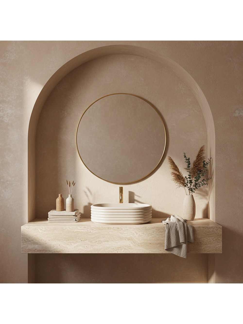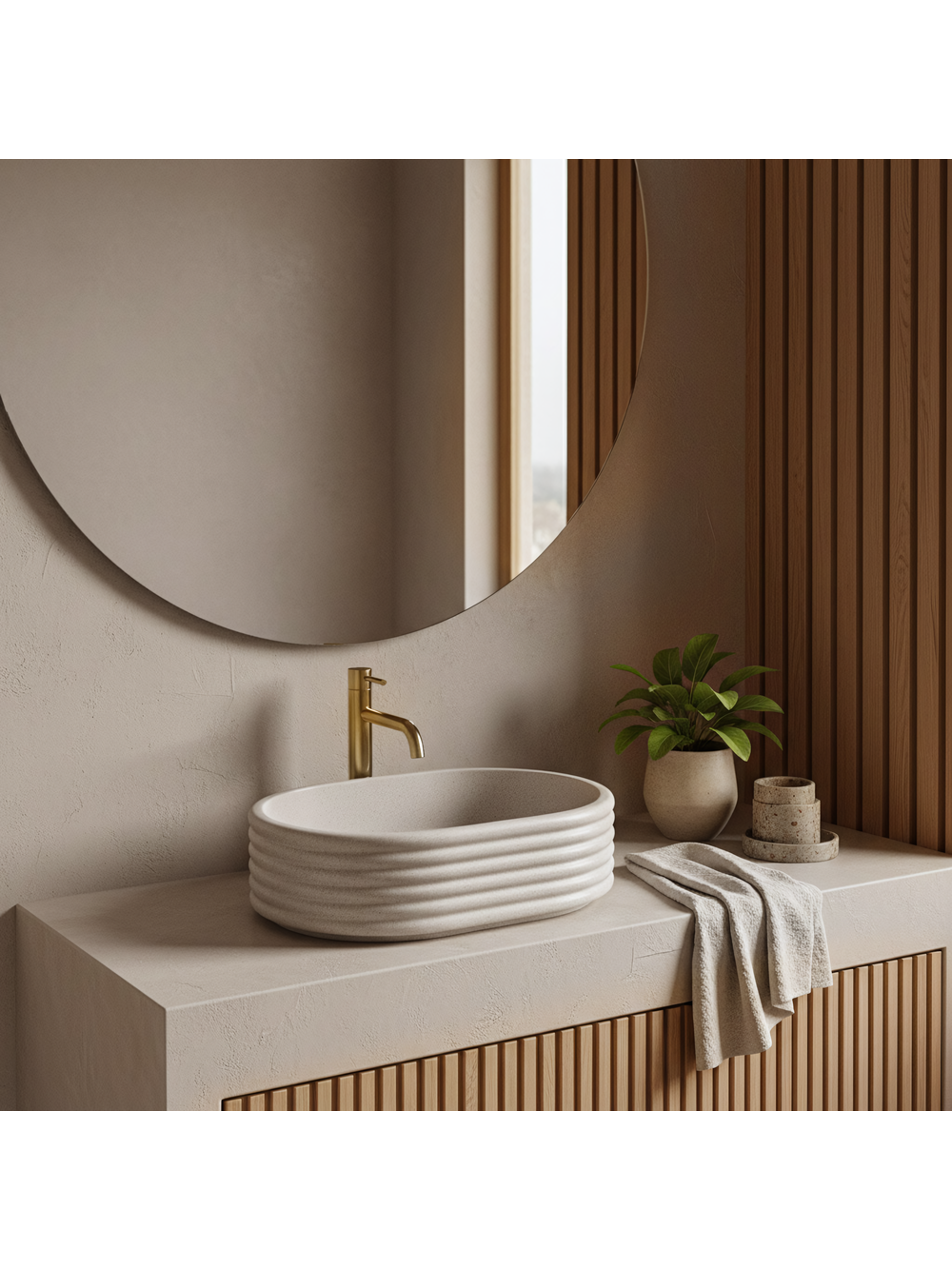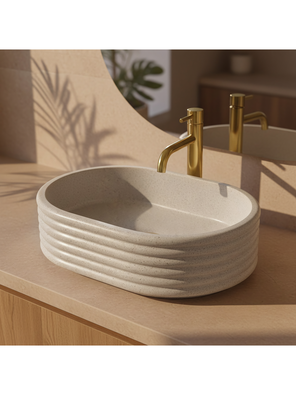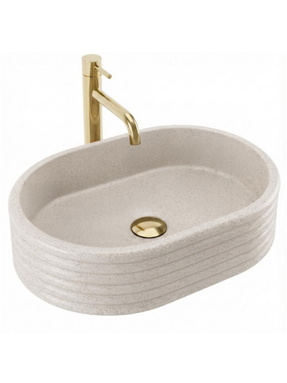 Adaugă prospețime și eleganță băii tale cu lavoarul pe blat Rea Nicoletta Beige. Acest model impresionează prin structura sa unică bazată pe linii orizontale și prin nuanța deschisă, naturală. Realizat din compozit durabil Artificial Stone, îmbină designul decorativ cu funcționalitatea de lungă durată. Canalizare orizontală – corpul cuvei este decorat cu inele orizontale distinctive. Acest model tridimensional conferă formei un ritm modern și o diferențiază de lavoarele standard. Nuanță Beige Stone – suprafața bej deschis este îmbogățită cu o textură fin granulată, care imită aspectul pietrei naturale de tip gresie, aducând căldură și o atmosferă primitoare. Material Artificial Stone – piatra compozită modernă asigură o rezistență ridicată la deteriorări mecanice și decolorare și este mai plăcută și mai caldă la atingere decât materialele tradiționale. Interior neted – în ciuda exteriorului striat, interiorul cuvei este perfect neted și bine profilat, facilitând curățarea zilnică și asigurând scurgerea liberă a apei. Montaj pe blat – modelul este destinat instalării pe blat sau mobilier, permițând evidențierea completă a formei sale decorative, striate. Lavoarul Rea Nicoletta Beige este o alegere excelentă pentru amenajări în stil boho, scandinav sau japandi. Culoarea sa caldă și textura interesantă îl transformă într-un element decorativ subtil, dar de efect, al zonei de spălare.