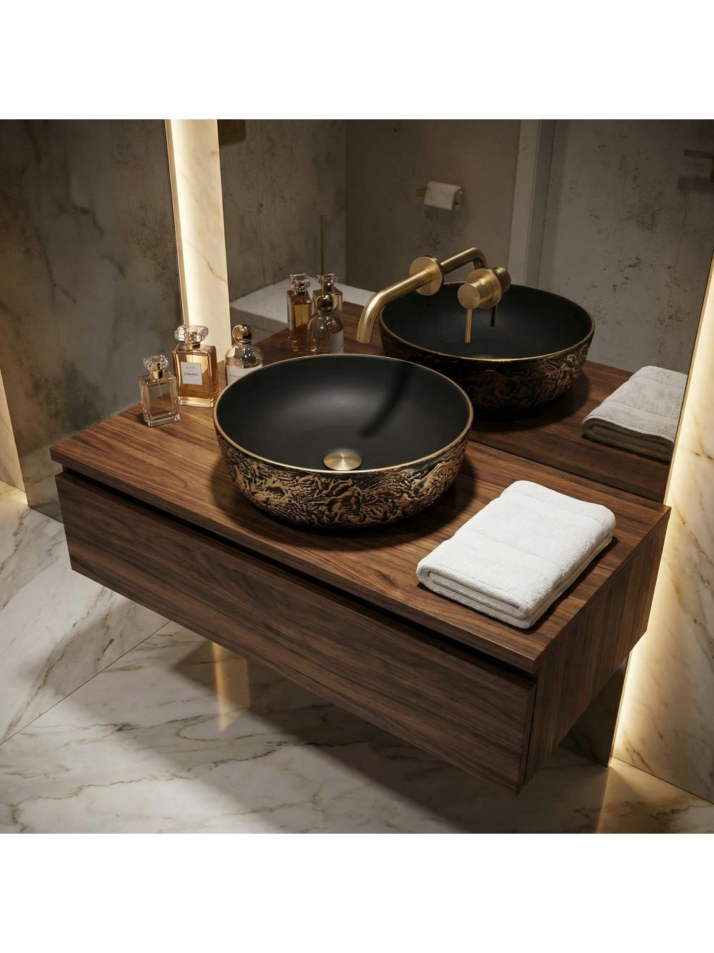 Specificatii tehnice Lavoar pe blat Rea Babilon negru/auriu: