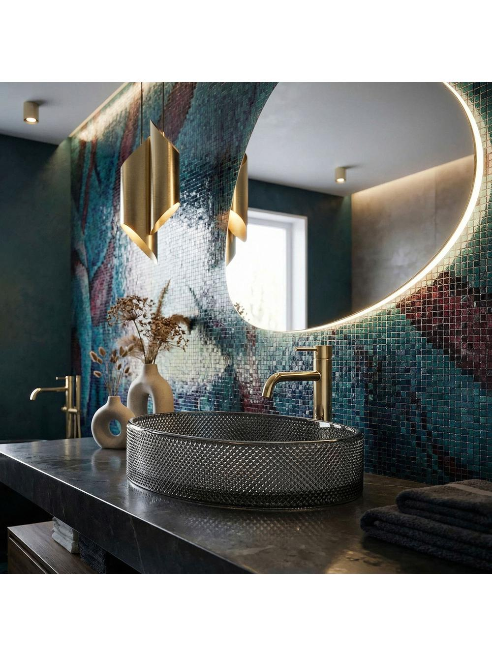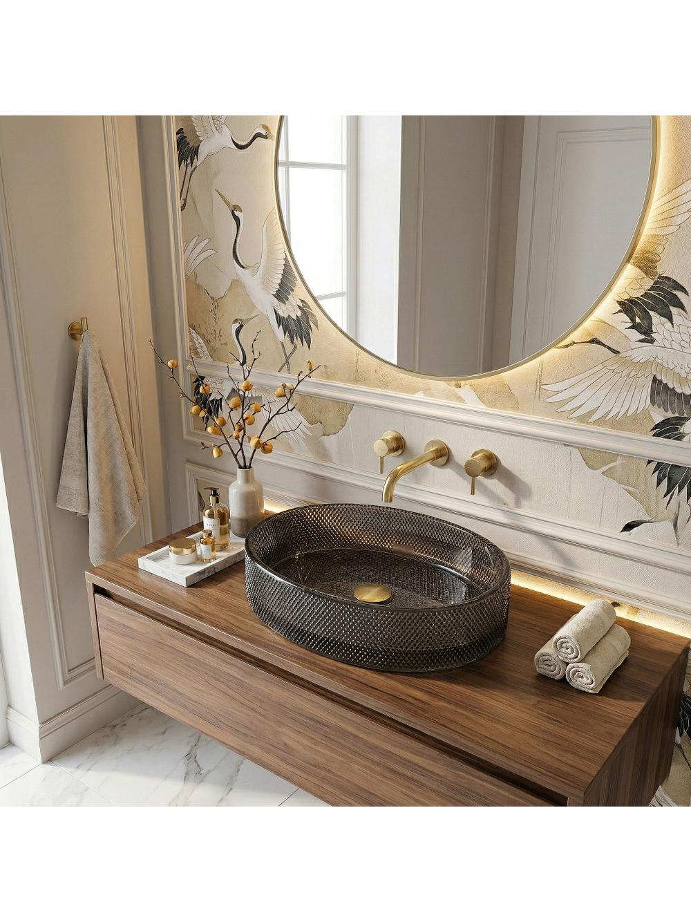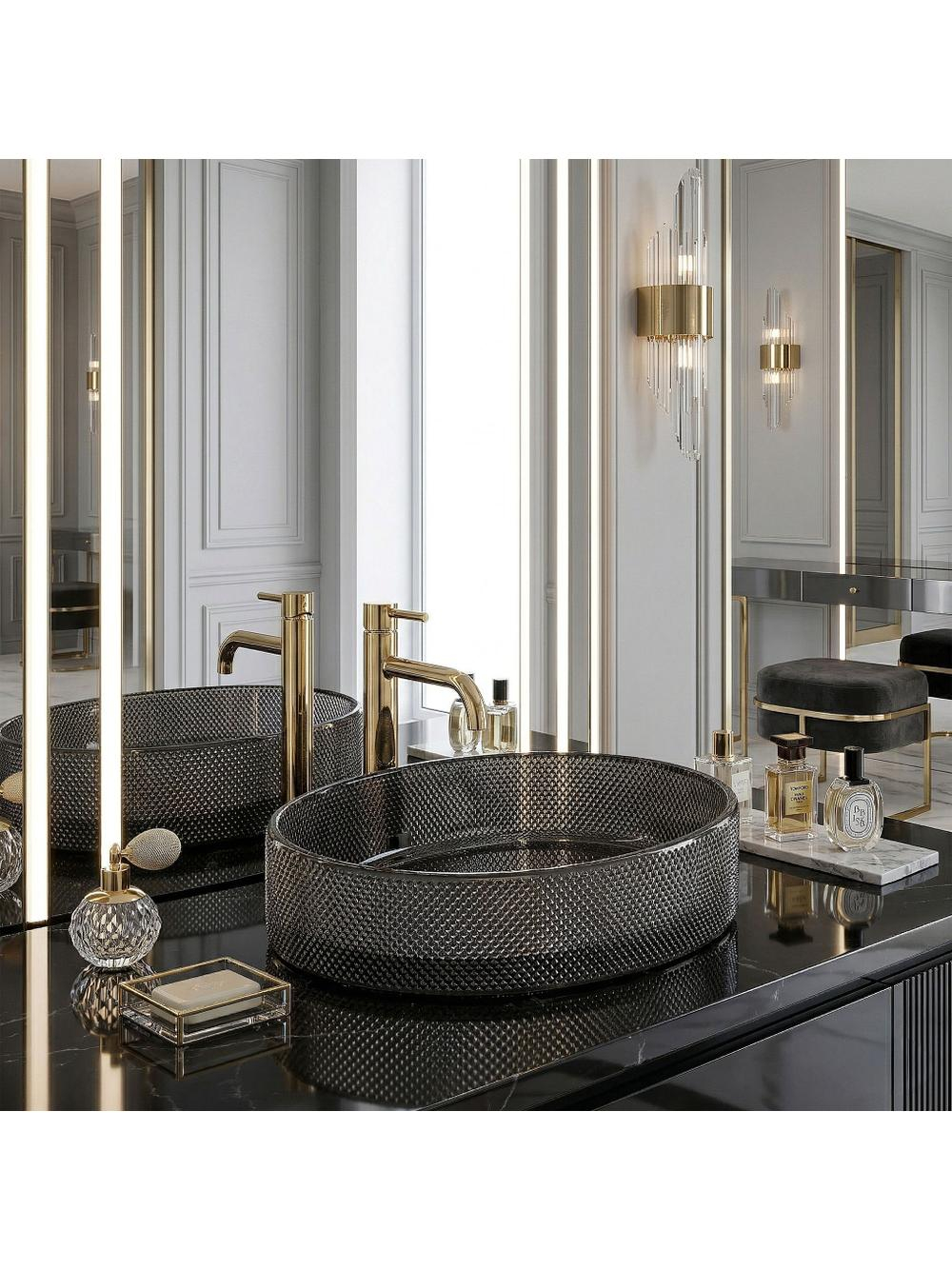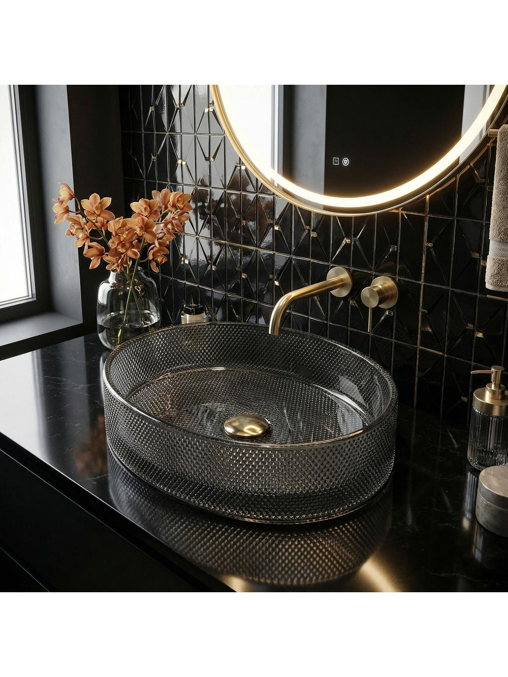 Ești în căutarea unui element ce îți va conferi băii tale o strălucire cu adevărat regală? Lavoarul pe blat Mirella, confecționat din sticlă groasă decorativă, reprezintă alegerea perfectă pentru cei ce apreciază exclusivitatea și designul inspirat din bijuterii. Cu o structură unică ce-l transformă în punctul central al oricărei amenajări, acest lavoar încântă prin jocul de lumini și precizia execuției, schimbând complet aspectul interiorului.Material din sticlă - utilizarea sticlei garantează nu doar un efect vizual spectaculos, ci și o rezistență ridicată la zgârieturi și la utilizarea zilnică.Textură de bijuterie a suprafeței - modelul decorativ de pe exteriorul lavoarului amintește de pietre prețioase șlefuite, conferind întregii piese un caracter luxos și rafinat.Reflexii luminoase spectaculoase - structura specială a materialului face ca lavoarul să strălucească sub lumină, aducând dinamism și eleganță în baie.Perfect pentru diferite stiluri - datorită formei ovale și ornamentației bogate, acest model se potrivește perfect în interioare glamour, art deco clasic sau spații moderne de lux.Netezime igienică - finisajul neted al interiorului cuvei previne acumularea impurităților, asigurând menținerea unei curățenii impecabile cu un minim de efort.