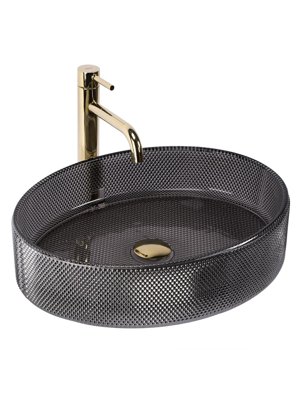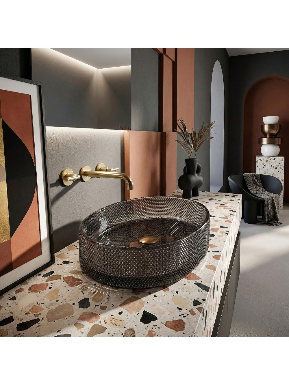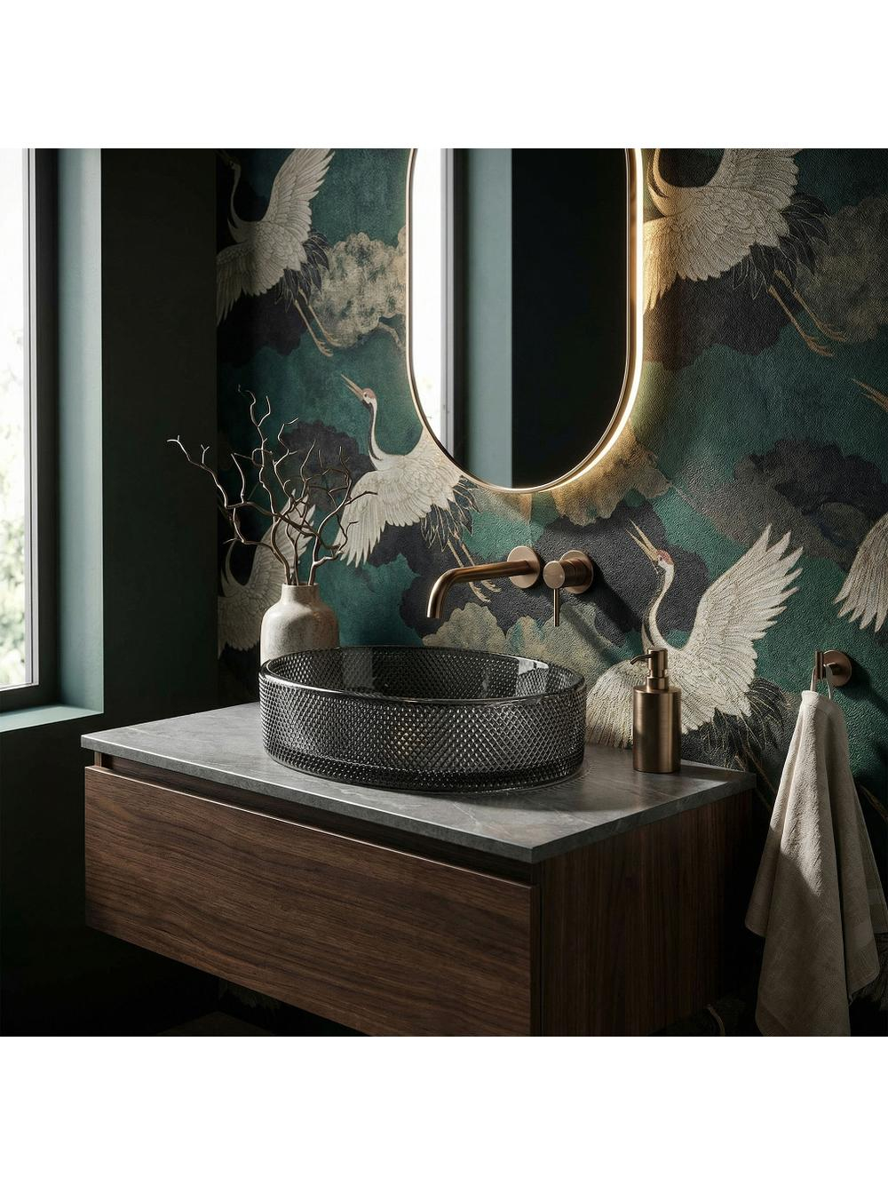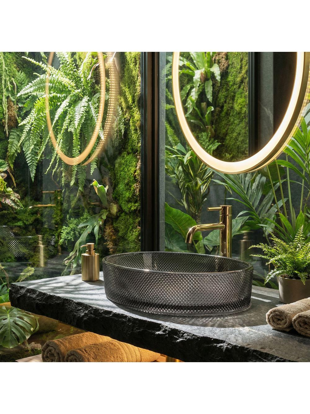 Ești în căutarea unui element ce îți va conferi băii tale o strălucire cu adevărat regală? Lavoarul pe blat Mirella, confecționat din sticlă groasă decorativă, reprezintă alegerea perfectă pentru cei ce apreciază exclusivitatea și designul inspirat din bijuterii. Cu o structură unică ce-l transformă în punctul central al oricărei amenajări, acest lavoar încântă prin jocul de lumini și precizia execuției, schimbând complet aspectul interiorului.Material din sticlă - utilizarea sticlei garantează nu doar un efect vizual spectaculos, ci și o rezistență ridicată la zgârieturi și la utilizarea zilnică.Textură de bijuterie a suprafeței - modelul decorativ de pe exteriorul lavoarului amintește de pietre prețioase șlefuite, conferind întregii piese un caracter luxos și rafinat.Reflexii luminoase spectaculoase - structura specială a materialului face ca lavoarul să strălucească sub lumină, aducând dinamism și eleganță în baie.Perfect pentru diferite stiluri - datorită formei ovale și ornamentației bogate, acest model se potrivește perfect în interioare glamour, art deco clasic sau spații moderne de lux.Netezime igienică - finisajul neted al interiorului cuvei previne acumularea impurităților, asigurând menținerea unei curățenii impecabile cu un minim de efort.