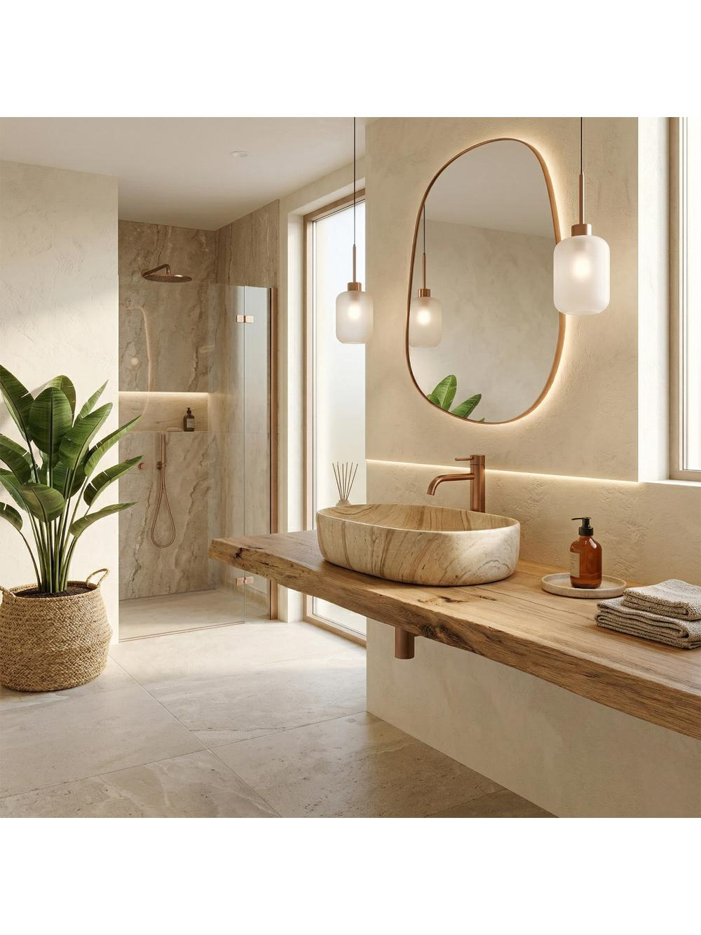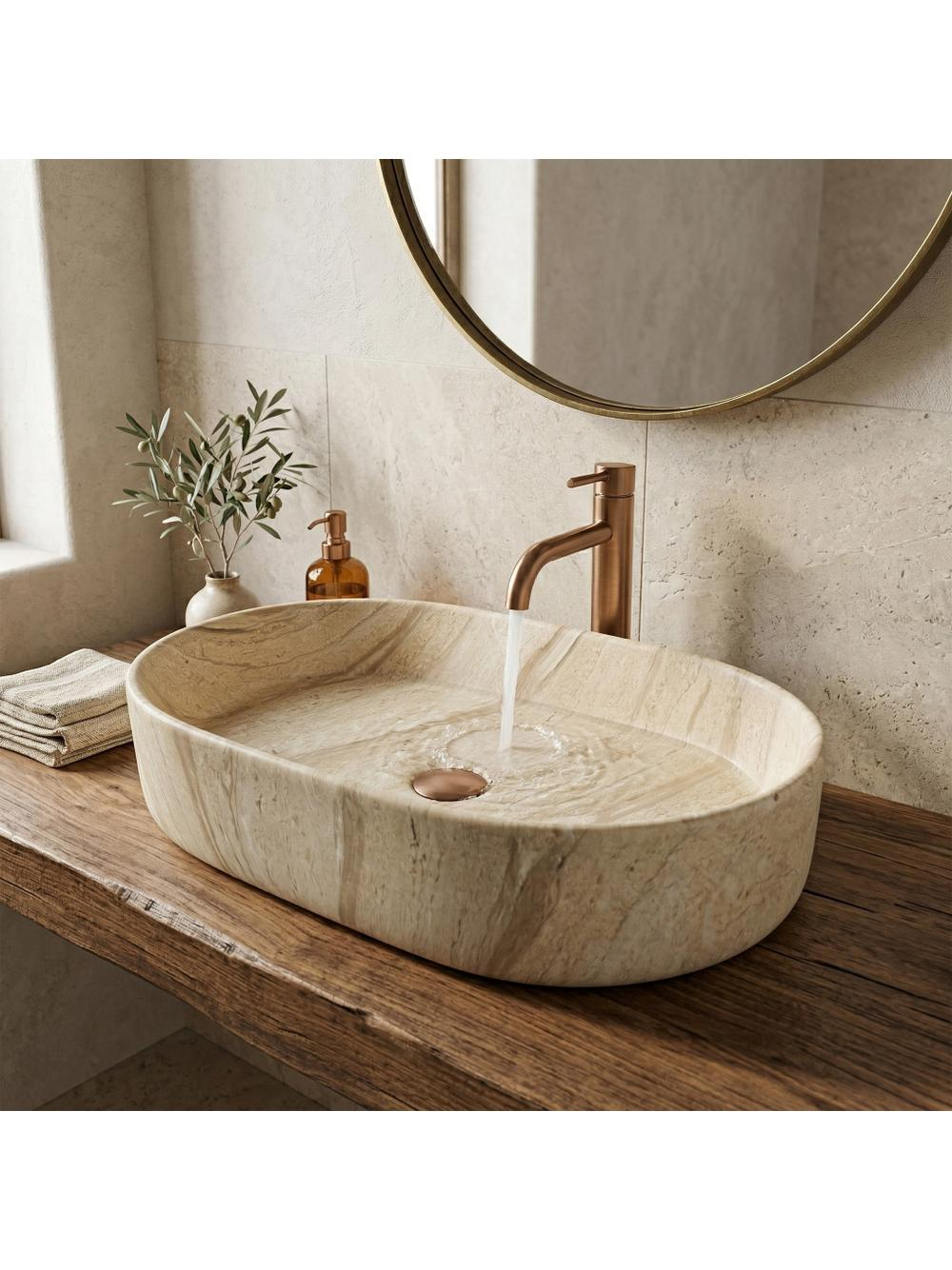Ceramica sanitară mată este un material premium ce asigură durabilitate, rezistență la zgârieturi și un aspect modern. Modelul Sandy vine cu un finisaj unic ce imită gresia, oferind băii tale un aspect natural și distinct față de alte opțiuni. Montajul pe blat oferă flexibilitate în designul băii tale, punând în valoare estetica produsului.
