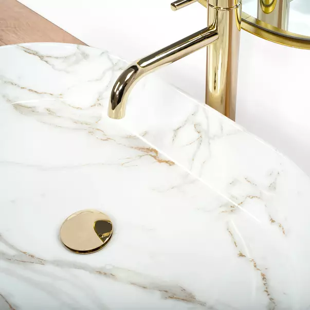 Lavoar pe blat Rea Nadia Aiax oval finisaj alb piatra lucios 61 cm