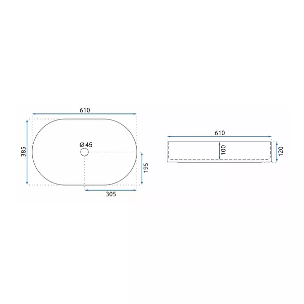 Specificatii tehnice Lavoar pe blat Rea Nadia Aiax oval finisaj alb piatra lucios 61 cm: