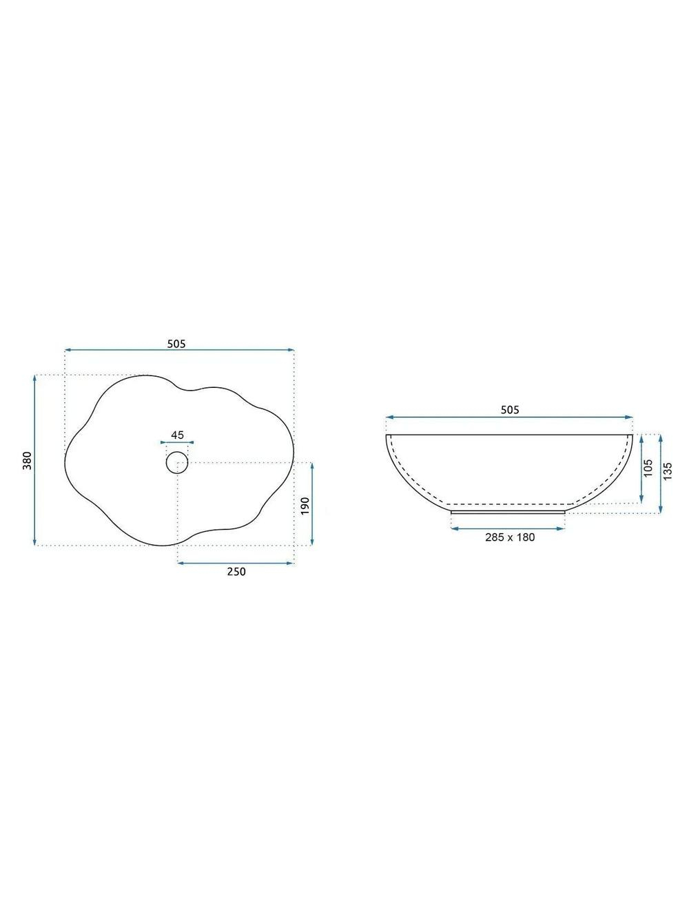 Specficatii tehnice Lavoar pe blat Rea Pearl Ruststone:
